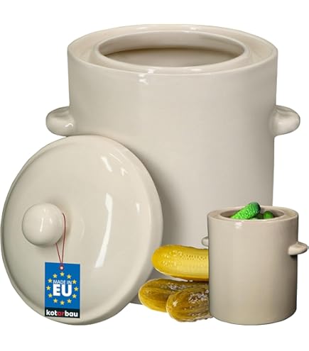 Dieses Gärtopf-Set von MS-Steinzeug ist perfekt für alle, die gesund und nachhaltig leben wollen! Der 5 Liter große Topf aus braunem Steinzeug kommt mit allem, was du zum Fermentieren brauchst: Beschwerungsstein, Krautschneider (60x19cm), Stampfer, Krautgabel und sogar Rezepte. So kannst du ganz einfach Sauerkraut, Gurken, Bohnen, Kombucha oder andere Leckereien selbst machen. Die Milchsäuregärung macht das Gemüse nicht nur länger haltbar, sondern auch vitaminreicher - ideal für Veganer und Vegetarier. Einfach den Topf ausspülen, befüllen, Steine drauf und den Deckel auflegen. Die extra breite Wasserrinne wird mit Wasser gefüllt und sorgt für luftdichten Abschluss. Die glatte Glasur macht die Reinigung super einfach. Die Töpfe werden bei 1250°C gebrannt und sind damit extrem robust. Ob für Einsteiger oder erfahrene Fermentierer - mit diesem Set gelingt dir jedes fermentierte Gemüse! Gesund, lecker und ganz ohne Konservendosen.
