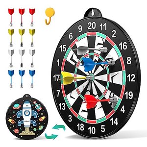 Wow, diese Dartscheibe für Kinder ist ja mal richtig groß! 100cm Durchmesser - damit treffen sogar die Kleinen easy ins Ziel. Doppelseitig mit 4 verschiedenen Motiven: Traditionell, Neon und zwei Dino-Designs. Im Set dabei: 16 Klebebälle, 6 weiche Dartpfeile, Aufhängehaken und ne Tragetasche. Alles aus weichem, sicherem Material - nichts scharfes, nichts gefährliches. Perfekt für Kinder von 4-8 Jahren, fördert die Hand-Augen-Koordination und macht dabei noch Riesenspaß. Einfach aufhängen oder mitnehmen - die Scheibe ist faltbar und leicht. Ob drinnen im Kinderzimmer oder draußen im Garten - damit sind die Kids stundenlang beschäftigt. Als Geburtstagsgeschenk, zu Weihnachten oder einfach so - damit machst du garantiert glückliche Kinderaugen!