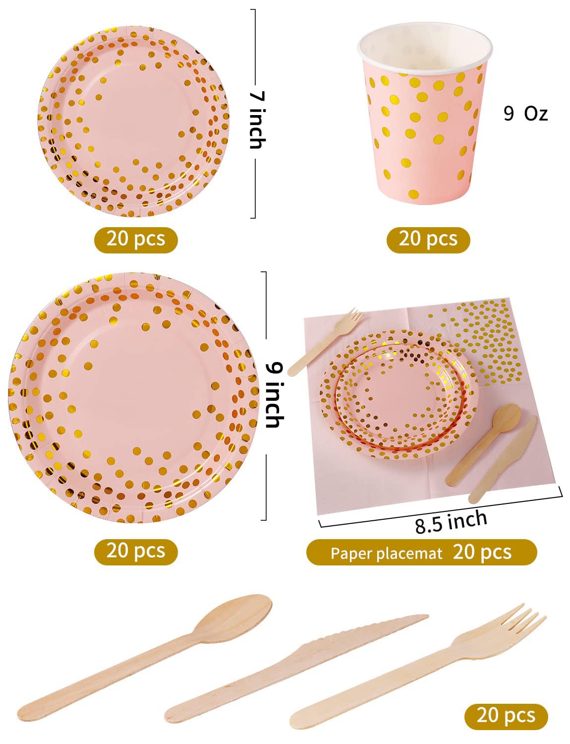 Das Design mit goldenen Tupfen auf rosa Hintergrund sieht einfach traumhaft aus! Perfekt für Geburtstage, Baby Showers, Hochzeiten oder Partys mit Freunden.