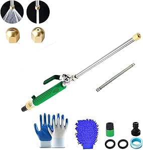 Professionelle Reinigungskraft ohne Strom! Diese Hochdruck-Düse verwandelt deinen normalen Gartenschlauch in einen powerful Reiniger. Einfach anschließen und schon kommt ein starker Strahl raus, der Schmutz, Schlamm und Dreck von Terrasse, Auto und Gartenmöbeln entfernt. Mit zwei verschiedenen Düsen: Einmal Fächerstrahl für große Flächen und einmal Punktstrahl für hartnäckige Verschmutzungen. Aus Aluminiumlegierung und Kupfer gefertigt, ist die Düse robust und langlebig. Der TPR-Griff liegt sicher in der Hand, und der Schnellverschluss passt zu den meisten Gartenschläuchen. Perfekt für die Auto-Wäsche, die Reinigung von Zäunen, Mülltonnen oder der Einfahrt. Ohne Strom, ohne Batterien - nur mit Wasserdruck. Ein echtes Power-Tool für jeden Haushalt, das teure Hochdruckreiniger überflüssig macht. Einfach anschließen und sich über blitzsaubere Ergebnisse freuen!