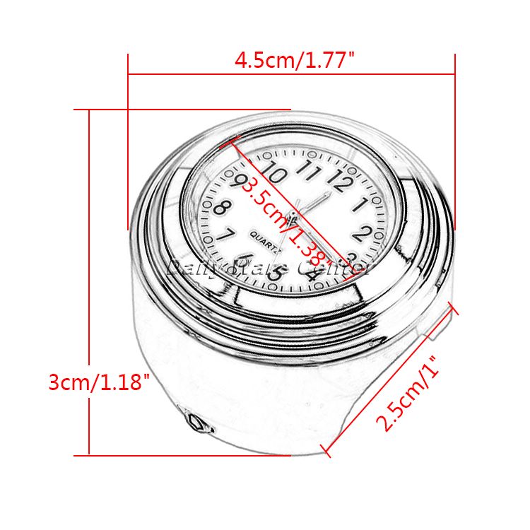 Perfekt für alle Motorradfahrer, die auch unterwegs die Uhrzeit im Blick behalten wollen! Diese coole Lenkeruhr ist speziell für 7/8 bis 1 Zoll Lenker konzipiert und lässt sich ganz einfach mit einer Edelstahlschraube befestigen. Das weiße Zifferblatt mit chromfarbenem Gehäuse sieht nicht nur stylisch aus, sondern ist auch absolut wasserdicht und stoßfest - genau das Richtige für den Einsatz bei Wind und Wetter. Besonders praktisch: Die leuchtenden Zahlen ermöglichen auch nachts eine klare Ablesbarkeit. Mit einem Durchmesser von 4,5 cm ist die Uhr gut sichtbar, aber nicht zu aufdringlich. Die Anti-Rutsch-Gummimatte sorgt für einen sicheren Halt am Lenker. Einfach montieren und losfahren - so wird dein Motorrad noch individueller!