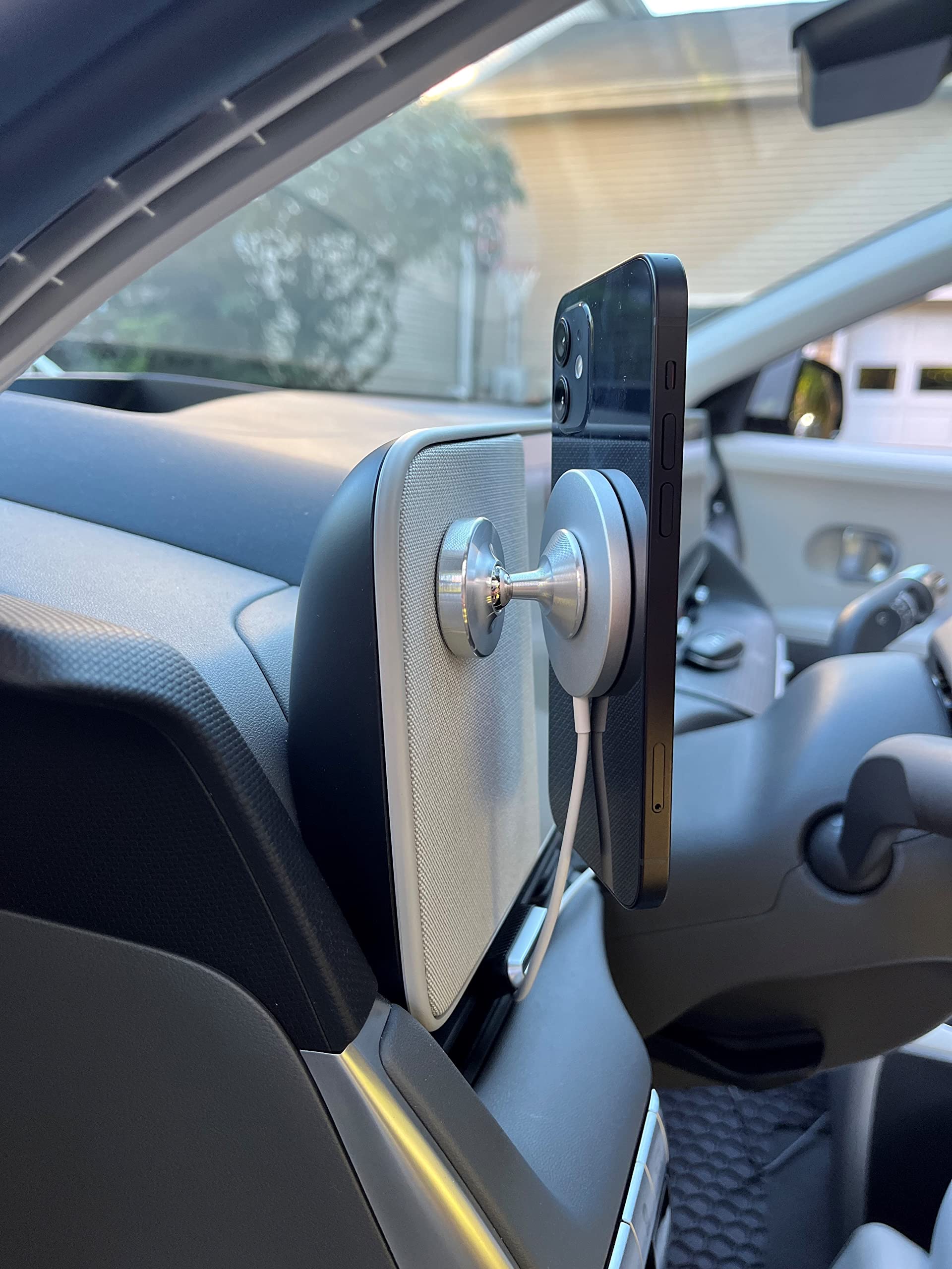 Endlich ne praktische Handyhalterung für deinen Hyundai! Dieses Metall-Teil klebt magnetisch am Armaturenbrett - ohne Kleber, ohne Rückstände. Passt perfekt für Ioniq 5, Ioniq 9, Sonata, Kona und Santa Fe. Mit 4 magnetischen Ringen (schwarz und weiß) für extra Halt. Dein Phone bleibt auch in Kurven sicher sitzen. 360° drehbar und mit einer Hand bedienbar. Super flach und unauffällig - stört die Sicht nicht. Einfach draufklatschen und losfahren!