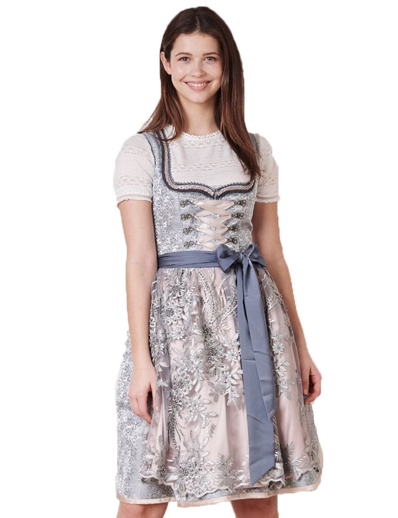 Wiesn-Feeling pur! Dieses wunderschöne Dirndl-Kleid bringt bayerische Gemütlichkeit in deinen Kleiderschrank. Das klassische Design mit figurbetonendem Mieder, tiefem Dekolleté und vollem, knielangem Rock sorgt für die typische weibliche Silhouette. Aus traditionellem Baumwolle- oder Polyester-Mix mit dekorativer Borte verarbeitet. Die zarte Spitzenschürze aus Organza rundet den Look perfekt ab. Perfekt fürs Oktoberfest, jeden Volksfest-Besuch oder bayerische Feste. Einfach in der Pflege: Mieder und Rock sind maschinenwaschbar, Schürze und Borte bitte per Hand waschen, um die schönen Details zu schonen. Nach dem Tragen einfach mit Süßwasser spülen - nicht bleichen! In Größe 3254 erhältlich. Ob mit weißer Bluse oder solo getragen - dieses Dirndl macht dich zur Königin des Fests! Einfach anziehen und die bayerische Lebensfreude genießen!