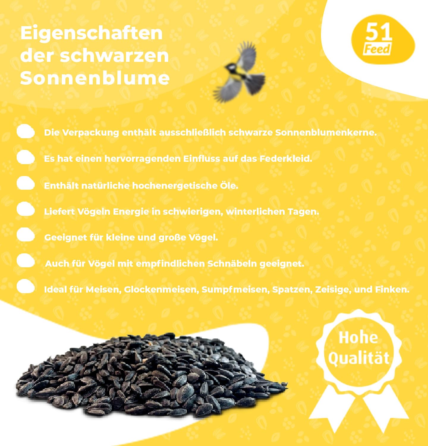 Wow, mit diesen 30kg schwarzen Sonnenblumenkernen wirst du zum Paradies für Wildvögel! Die Kerne sind super energiereich und voller Nährstoffe - perfekt für Finken, Meisen, Spatzen und viele andere Vögel. Ideal für Futterhäuser, Futterspender oder einfach auf den Boden gestreut. Kann das ganze Jahr über verfüttert werden, besonders wichtig im Winter wenn die Vögel mehr Energie brauchen. Aber Achtung: Bitte nur als Teil einer ausgewogenen Ernährung füttern, nicht als Alleinfutter! Auch Hühner und Tauben lieben die Kerne, aber immer in Maßen wegen dem hohen Fettgehalt. Dein Garten wird zum Vogel-Treffpunkt!