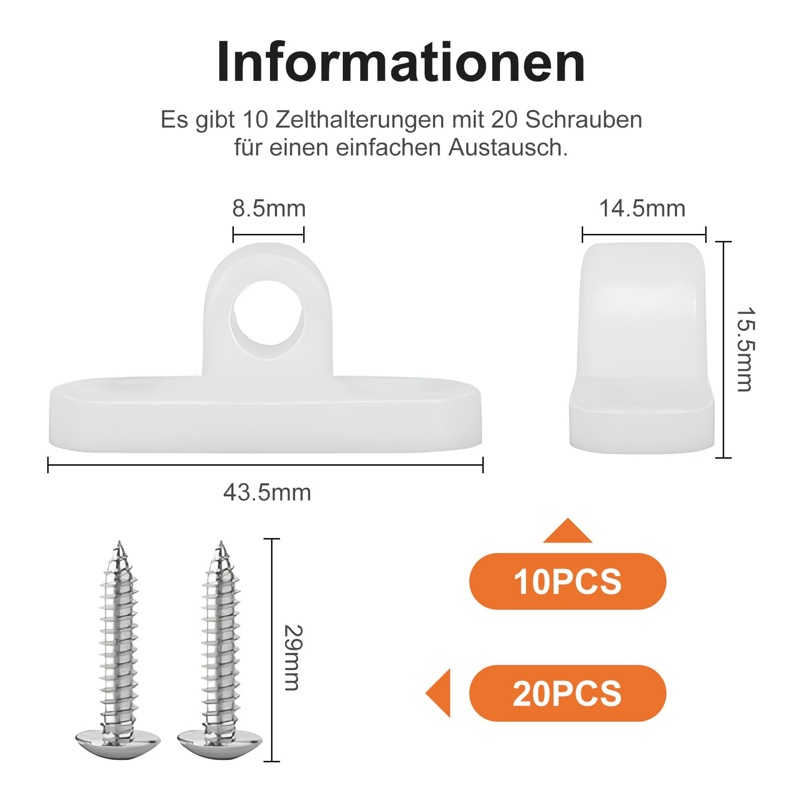 Endlich steht dein Zelt bombenfest! Mit diesen 10 robusten Vorzeltösen und 20 passenden Schrauben machst du dein Wohnmobil oder deinen Wohnwagen richtig campingtauglich. Perfekt für Luftvorzelte, Planen und Markisen - einfach anbringen und deine Camping-Ausrüstung ist bei jedem Wetter sicher befestigt. Die weißen Ösen aus stabilem Material halten auch bei Wind und Regen zuverlässig. Super einfach zu montieren, selbst als Camping-Anfänger kriegst du das hin. Ob auf dem Campingplatz oder beim spontanen Outdoor-Trip - mit diesem Set bist du immer bestens vorbereitet. Praktisch für längere Aufenthalte, wenn du eine zuverlässige Befestigung brauchst. Einfach die Ösen mit den Schrauben festdrehen und schon kannst du Zeltleinen und Planen sicher befestigen. Ein Muss für jeden Camper, der Wert auf Stabilität und Sicherheit legt!