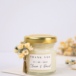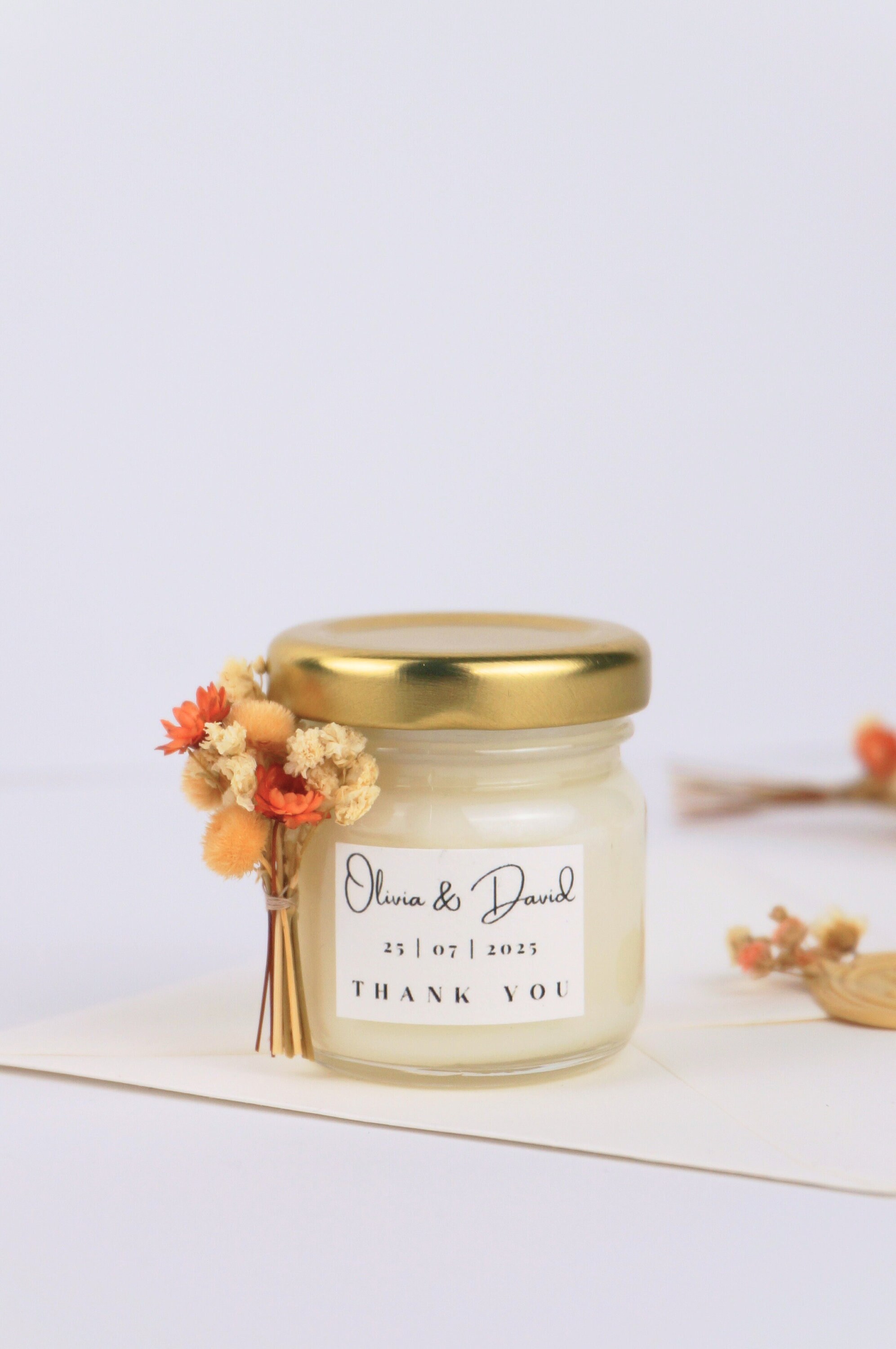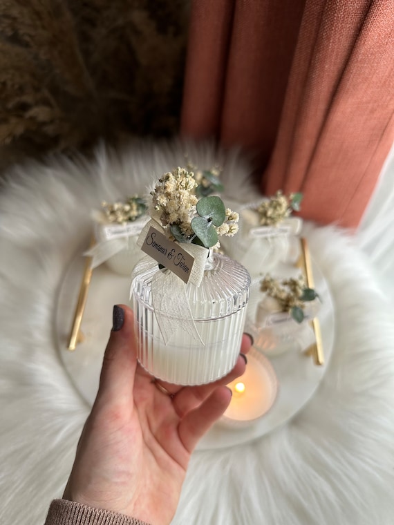 Mach deinen besonderen Tag unvergesslich für deine Gäste! Diese liebevoll gestalteten Kerzen sind das perfekte Gastgeschenk für Hochzeiten, Taufen, Babypartys oder andere Feiern. Jede Kerze kann personalisiert werden - mit Namen, Datum oder einem persönlichen Spruch. Die Mini-Kerzen kommen in elegantem Design daher und sind in hochwertigem Wachs mit sicherem Docht gefertigt. Auf Wunsch auch in transparenter Geschenkverpackung mit Schleife erhältlich. Das ideale Format für Tischdekoration oder als kleines Mitgebsel, das in jede Gastgeschenktüte passt. Deine Gäste werden sich über dieses persönliche Andenken freuen, das noch lange an den besonderen Tag erinnert. Einfach bestellen, personalisieren und staunen!