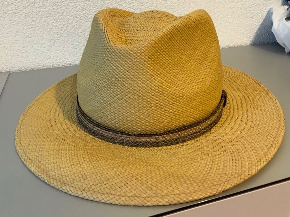 Sommer, Sonne, Panamahut! Dieser klassische Panamahut von Harry's Collection bringt ecuadorianischen Stil direkt zu dir. Hergestellt aus 100% natürlichem Palmblatt-Toquilla-Stroh - komplett handgeflochten von erfahrenen Handwerkern. Erhältlich in fünf trendigen Farben: Braun, Olive, Camel, Natur oder Weiß. Mit 7,5cm Randbreite und 12cm Kronenhöhe bietet er optimalen Sonnenschutz. Das dicke Schweißband innen sorgt für angenehmen Tragekomfort. In den Größen S bis XXL ist für jede Kopfgröße der passende Hut dabei. Mit nur 94 Gramm bei Größe L ist er super leicht und luftdurchlässig - perfekt für heiße Sommertage! Ob für den Stadtbummel, Gartenparty oder Strandurlaub - dieser Hut ist ein zeitloser Klassiker, der nie aus der Mode kommt. Echte Handwerkskunst aus Ecuador!