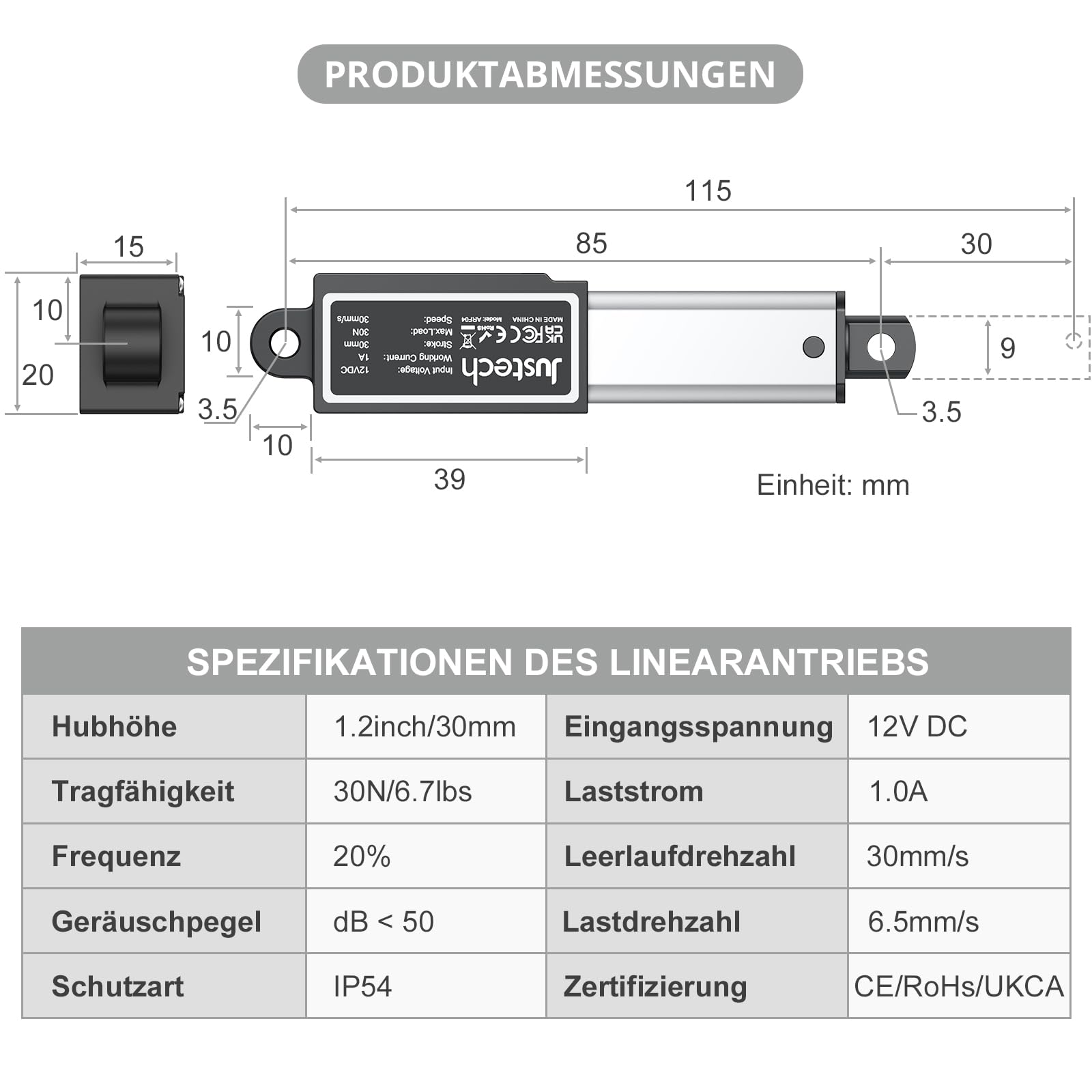 Intelligente Automatisierung für dein Zuhause! Dieser Mini-Linearantrieb ist ein echtes Multitalent. Mit 30N Schubkraft und 30mm/s Geschwindigkeit perfekt für verschiedene Anwendungen. DC12V Betriebsspannung, 30mm Hub - ideal für Fensteröffner, Smart Home Systeme oder Roboterprojekte. Mit IP54 Schutz gegen Spritzwasser, aus Aluminiumlegierung für maximale Langlebigkeit. Integrierte Sicherheitsfeatures: Überlastschutz, Kurzschlussschutz und automatischer Stopp. Leiser Betrieb unter 55dB. Einfache Installation mit Montagegestellen. Perfekt für Hausautomation, Landmaschinen oder Industrieanwendungen. Mach deine Projekte smart und effizient!