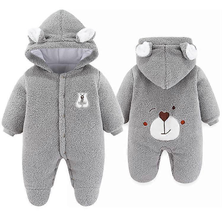 • Baby Fleece Overalls Winter - Plüsch Bärenohr Strampler Mit Kapuze Für Neugeborene