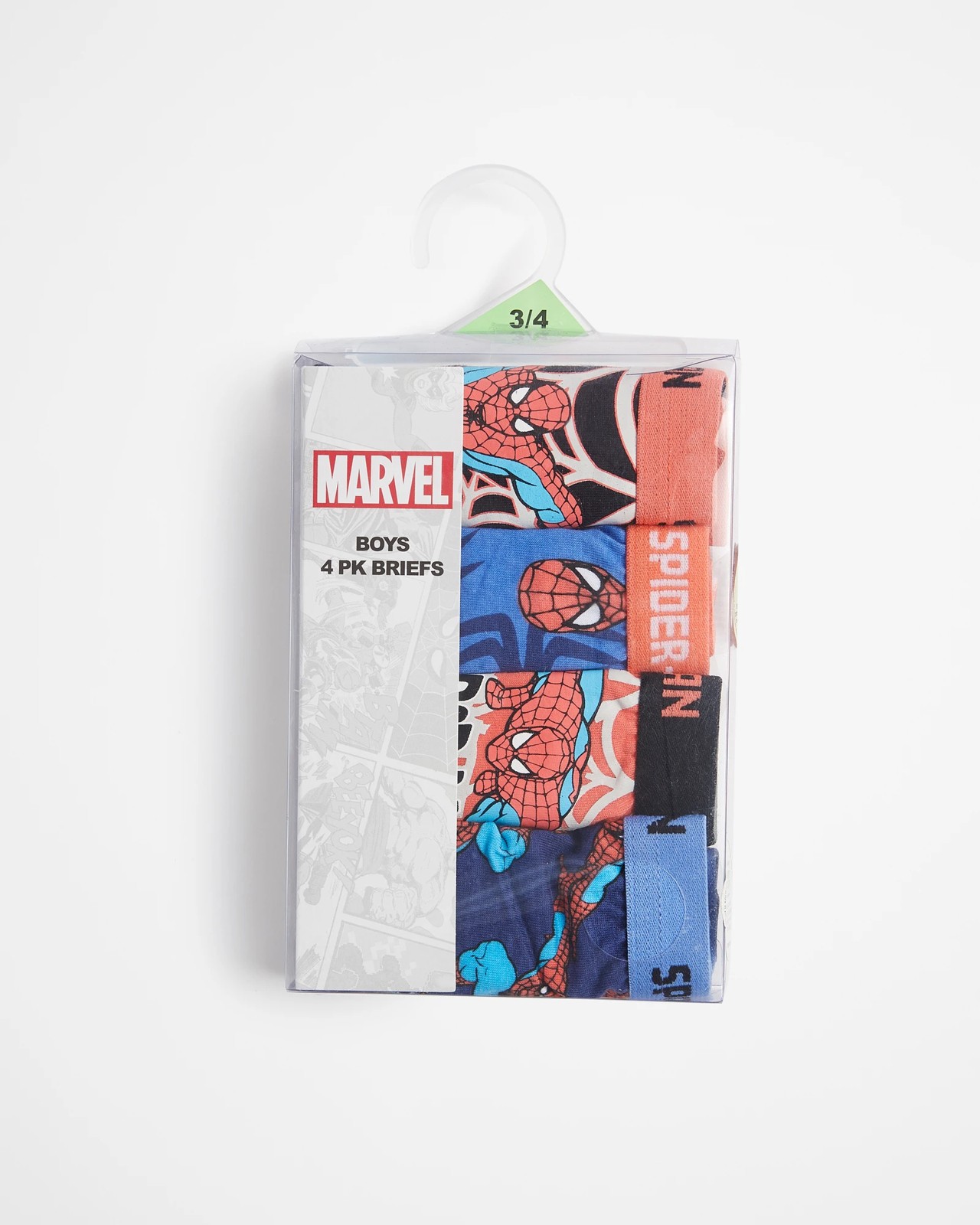 So cool! Diese Spiderman Unterwäsche begeistert jeden kleinen Superhelden-Fan. Mit Iron Man, Hulk und allen Lieblingscharakteren. 100% Baumwolle, super weich und angenehm auf der Haut. In den Größen 2/3T und 4T erhältlich. Perfekt für den Kindergarten, zu Hause oder unter der Kleidung. Die bunten Designs machen sogar das Anziehen zum Spaß. Einfach ein Muss für alle kleinen Marvel-Fans - praktisch, bequem und super stylisch!