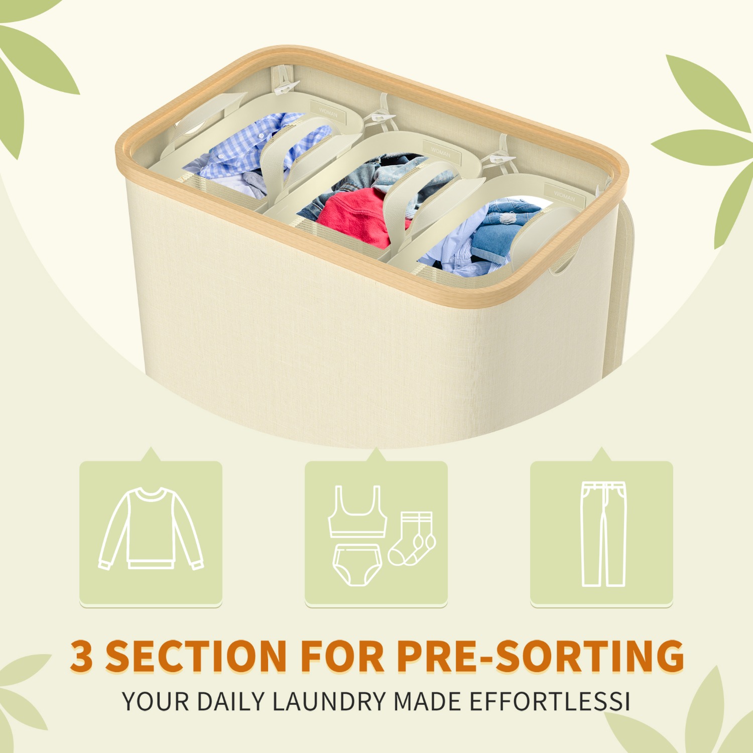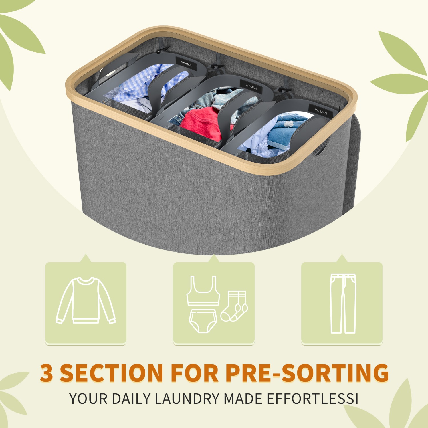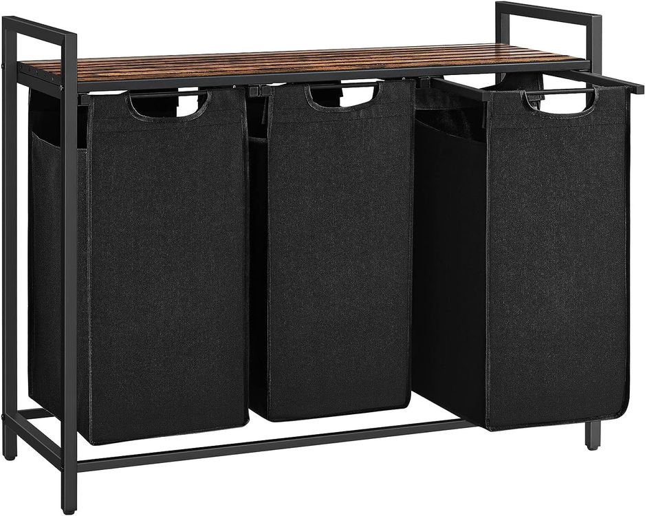 Endlich Ordnung im Wäschechaos! Dieser TESSTINA Wäschekorb mit 3 Fächern ist genau das Richtige für alle, die ihre Wäsche sortieren wollen. Mit ner Gesamtkapazität von 150 Litern (3x50L) passt da richtig viel rein - Weißwäsche, Buntwäsche und Feinwäsche getrennt, praktisch, oder? Die Taschen sind aus robustem Oxford-Stoff, wasserabweisend und abnehmbar. Mit ner Kunststoff-Bodenplatte hängen sie nicht durch und mit Klettverschlüssen nimmst du sie einfach ab um zur Waschmaschine zu tragen! Das coole Feature: Die integrierte Ablage oben! Da kannst du Sachen ablegen oder sie schützt die darunter liegende Tasche vor Spritzwasser. Und die Seitentaschen sind perfekt für Socken, Unterwäsche oder Putzlappen. Der Metallrahmen aus 2x2cm Stahlrohr ist mega stabil, dazu kommt ne X-Form Verstärkung und höhenverstellbare Füße für unebene Böden. Ob im Bad, Schlafzimmer oder Wäschekammer - dieser Wäschesammler macht überall ne gute Figur. Und er ist nicht nur für Wäsche gut - auch Spielzeug, Kissen oder andere Sachen lassen sich super darin verstauen. Einfach ein richtig praktisches Möbelstück das dir das Leben leichter macht!