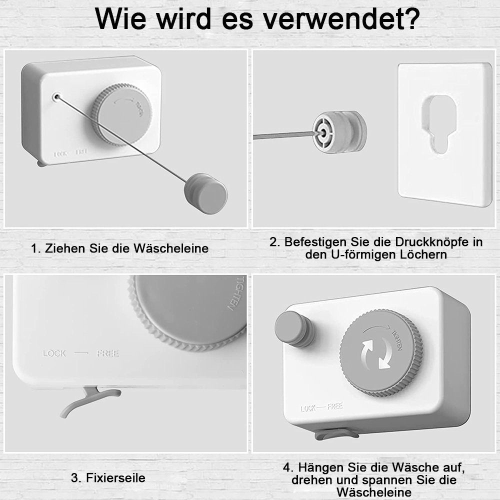 Platzsparend und super praktisch! Diese ausziehbare Wäscheleine ist perfekt für alle, die nicht viel Platz haben. Einfach an die Wand montieren und bei Bedarf auf volle 5,1 Meter ausziehen. Das Edelstahlseil ist mega stabil und hält bis zu 20 kg pro Strang - da kannst du auch nasse Jeans problemlos aufhängen. Der langsame Rückzugmechanismus ist genial - keine gefährlichen Schnappbewegungen! Perfekt für den Balkon, aber auch fürs Badezimmer oder die Wohnung. Mit dem Spannregler stellst du die passende Spannung ein, damit die Wäsche nicht durchhängt. Einfach ein Game-Changer für alle, die in der Stadt wohnen - Wäsche trocknen war noch nie so einfach!