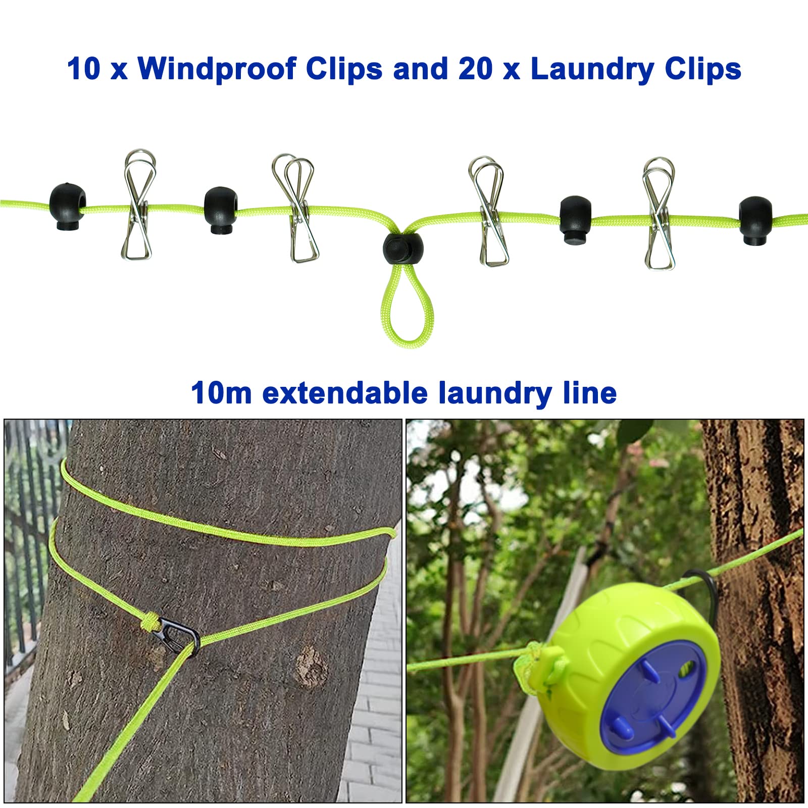 Boah, diese Wäscheleine von Fine jade2 ist echt praktisch! Mit 10 Metern Länge hast du genug Platz für deine ganze Wäsche - ob beim Camping, im Garten oder auf Reisen. Das coole Rollen-Design verhindert lästiges Verheddern und die praktische Aufbewahrungsbox ist nur 10x8x4,5 cm klein - passt also in jeden Rucksack. Mit dabei sind 10 robuste Edelstahl-Clips, die verhindern dass die Wäsche runterfällt, und 20 Wäscheklammern für den extra Halt. Die Leine selbst besteht aus hochfestem Nylon und hält bis zu 50 kg aus - da kannst du sogar schwere Decken draufhängen! Einfach die Haken an Bäumen, Geländern oder was auch immer befestigen, Leine rausziehen und schon kann's losgehen. Perfekt für unterwegs, aber auch super für den Balkon oder die Waschküche daheim. Nie wieder nasse Klamotten im Zelt oder Hotelzimmer - mit diesem Set hast du immer eine praktische Lösung parat!