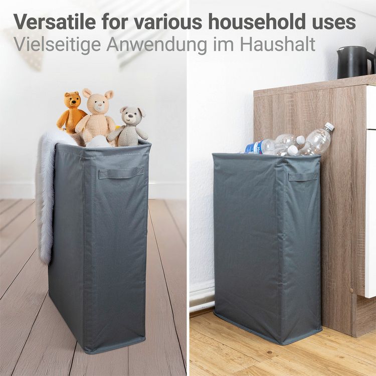 Der praktische Wäschebegleiter! Der WENKO Donkey fasst 48 Liter Wäsche und sieht dabei noch gut aus in petrol. Mit klappbaren magnetischen Griffen und Deckel mit 18cm Öffnung ist er super handlich. Verstärkungsstreben sorgen für Stabilität. Aus 100% Polyester außen und 100% Polypropylen innen - leicht zu reinigen und langlebig. Perfekt für Bad, Schlafzimmer oder WG. Einfach Wäsche rein, Deckel zu und alles ist ordentlich verstaut!