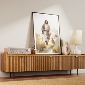 Dieses wunderschöne Leinwandbild mit der berührenden Szene von Jesus und dem Lamm bringt nicht nur spirituelle Inspiration in deine vier Wände, sondern ist auch ein echter Hingucker! Das Motiv zeigt Jesus, der dem verlorenen Lamm nachläuft - eine kraftvolle Symbolik für Liebe und Fürsorge. Verfügbar in zwei praktischen Größen: 30x40cm für kleinere Wände oder 40x60cm als richtiger Eyecatcher. Die Qualität ist top - hochwertige Leinwand, die Farben bleiben jahrelang frisch und lebendig. Perfekt fürs Wohnzimmer über dem Sofa, im Schlafzimmer für einen friedlichen Start in den Tag oder im Büro für Momente der Besinnung. Auch als Geschenk ideal für Konfirmation, Taufe oder einfach als Zeichen der Verbundenheit. Die neutrale Farbgestaltung passt zu fast jedem Einrichtungsstil, ob modern oder klassisch. Aufhängen ist total einfach - das Leinwandbild ist leicht und kommt fertig zum Aufhängen. Ein Kunstwerk, das nicht nur dekorativ ist, sondern auch täglich an die wichtigen Dinge im Leben erinnert. Egal ob für dich selbst oder als besonderes Geschenk - dieses Bild strahlt eine ganz besondere Atmosphäre aus!