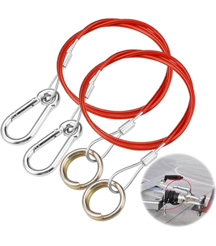 Diese beiden Abreißseile sind ein absolutes Muss für jeden Anhänger- und Wohnwagen-Besitzer! Mit 1m Länge und 4mm Durchmesser aus robustem verzinktem Stahldraht. Die Enden haben stabile Metallhaken und -ringe für sicheren Halt. Im Notfall reißen die Seile und aktivieren die Notbremse deines Anhängers - so bleibst du auch bei versehentlicher Abkopplung sicher. Die rote Beschichtung macht die Seile gut sichtbar und schützt vor Abrieb. Perfekt für Autoanhänger, Pferdeanhänger, Wohnwagen, Bootstrailer und mehr. Einfach zu befestigen - keine Werkzeuge nötig! Aus 304 Edelstahldraht mit PVC-Ummantelung für extreme Langlebigkeit. Korrosionsbeständig und wetterfest. Im Set sind 2 Seile enthalten - immer ein Ersatz parat. Ein kleines Teil mit großer Sicherheitswirkung für alle, die regelmäßig Anhänger ziehen. Fahre beruhigt, denn du bist auf der sicheren Seite!