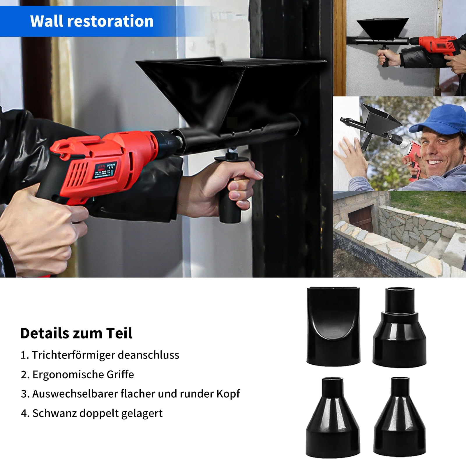 Für alle Heimwerker und Profis: Diese elektrische Mörtelspritze von Teodute macht Mörtelarbeiten so viel einfacher! Kommt mit 8 abnehmbaren Düsen (rund und flach) und 2 Anti-Rutsch-Griffen - für jede Anwendung die richtige Düse. Aus legiertem Stahl gefertigt - richtig robust und langlebig. Der trichterförmige Ladeanschluss macht das Befüllen super einfach und minimiert Verschwendung. Perfekt für Mörtel, Fugen, Putz, Gips und andere Baumaterialien. Ob du jetzt Steinmauern verfugst, Böden bearbeitest oder Renovierungsarbeiten durchführst - diese Spritze spart dir Zeit und Kraft. Einfach zu bedienen, schnell zu reinigen und vielseitig einsetzbar. Kein manuelles Gefummel mehr - damit geht die Arbeit richtig von der Hand. Auch für Epoxidharz und Verschönerungsmittel geeignet. Ein echter Game-Changer für jeden, der regelmäßig mit Mörtel arbeitet - ob auf der Baustelle oder im eigenen Heimwerker-Projekt!