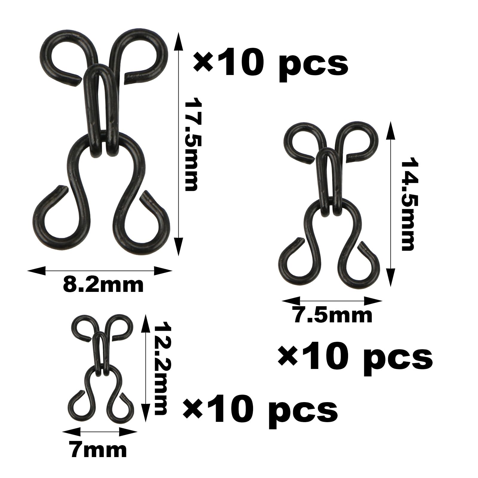 Hey du Nähbegeisterte! Dieses 100-teilige Set mit BH-Haken ist genau das Richtige für deine Nähprojekte! In 4 verschiedenen Größen: 11,5mm, 12,5mm, 14mm, 17mm - je 25 Stück. Aus Zinklegierung - rostfrei und langlebig. Super für BHs, Kleider, Röcke oder Hosen. Einfach zu verwenden - Haken und Öse einfach zusammendrücken. Perfekt als versteckter Verschluss - sieht man kaum! Ideal zum Reparieren oder für neue Kreationen. Spart dir das lästige Knöpfe annähen! Einfach unverzichtbar in jeder Nähkiste!