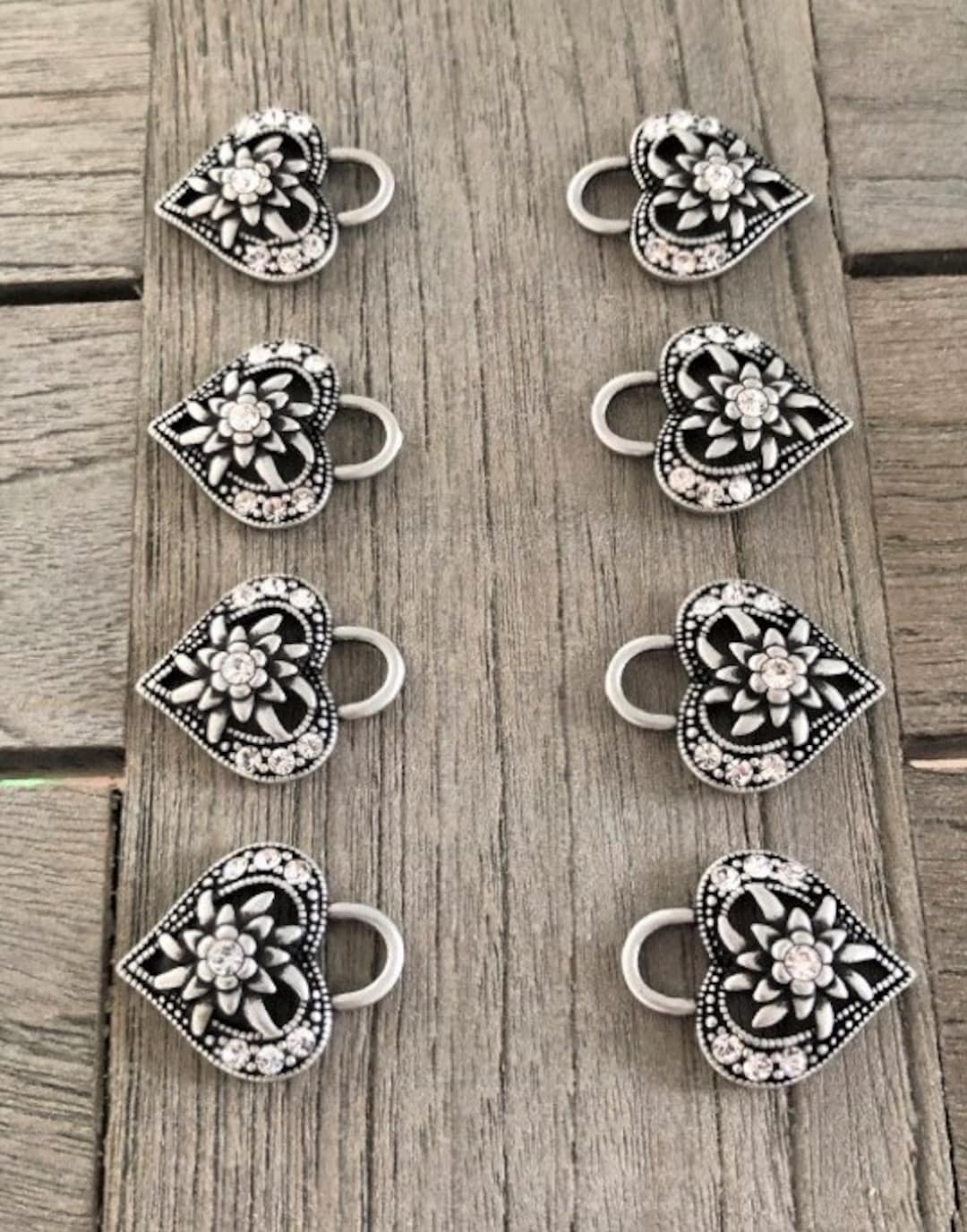 • Herzförmige Miederösen Altsilber - 8 Stück Mit Edelweiß Motiv Für Dirndl