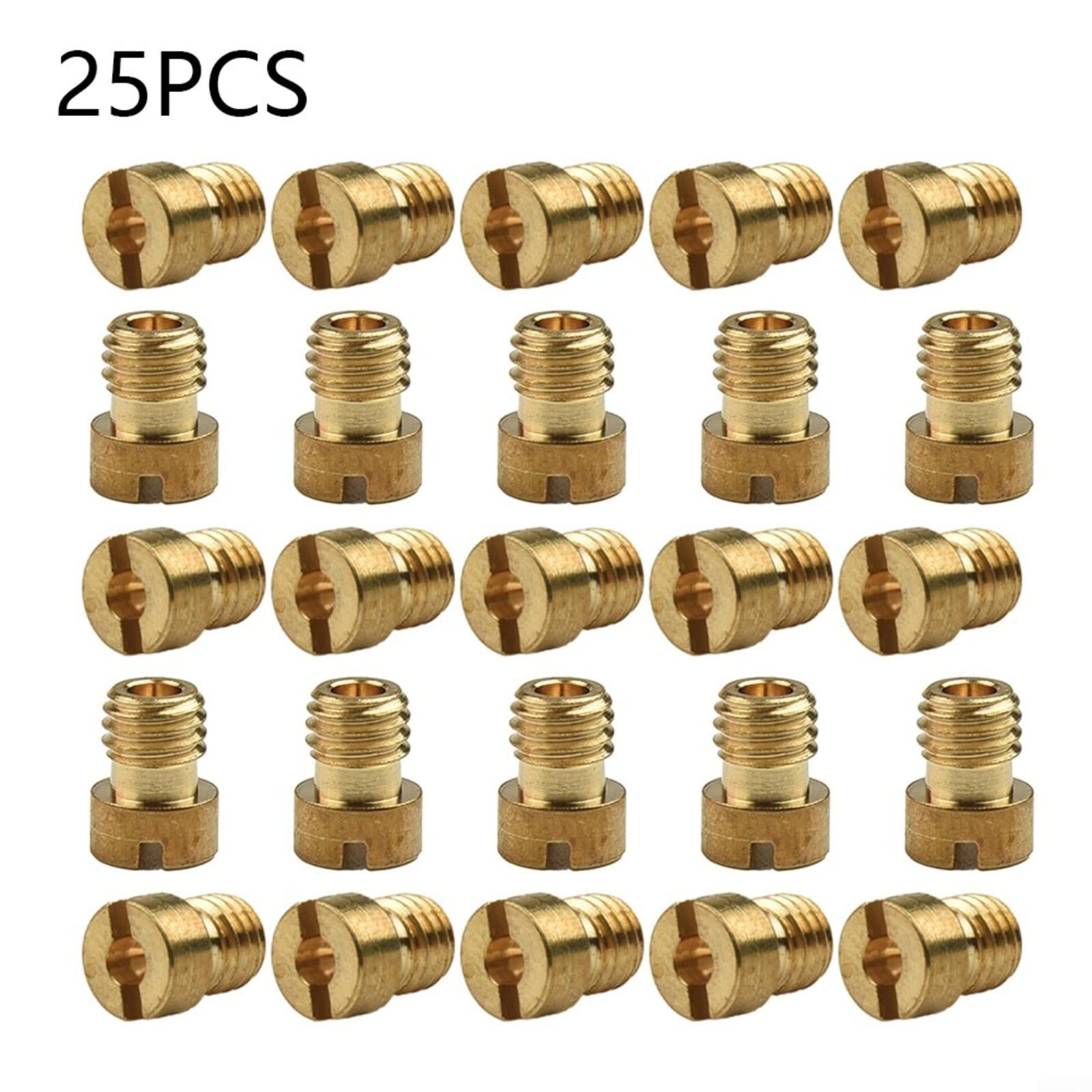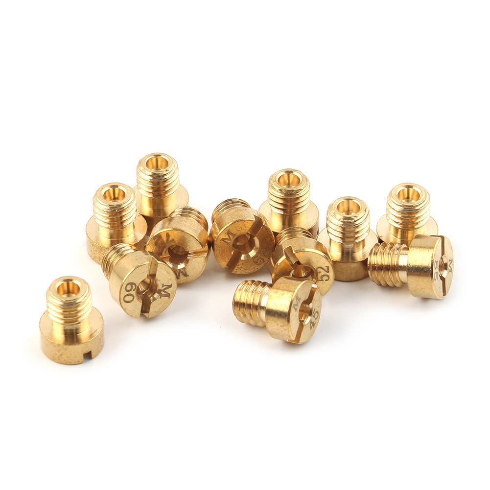 Schraubst du an deinem Moped, Motorrad oder Kleingerät und brauchst passende Vergaser-Düsen? Dieses 10-teilige Set mit den Größen 30, 32, 35, 36, 38, 40, 42, 45, 46 und 48 ist perfekt für Dellorto Vergaser wie SHA, SHB, UA, UB, PHBG und andere Modelle. Aus hochwertigem Messing gefertigt, sind die Düsen präzise gefertigt ohne Grate oder scharfe Kanten. Die goldfarbene Oberfläche sieht nicht nur gut aus, sondern ist auch korrosionsbeständig. Einfach die alte Düse rausdrehen, die neue reinschrauben, und schon läuft dein Motor wieder rund. Super praktisch um die optimale Einstellung zu finden oder Ersatz für kaputte Düsen parat zu haben. Das Set kommt komplett mit allen 10 Größen - so bist du für verschiedene Einstellungen und Motoren bestens ausgerüstet. Ob für Tuning, Reparatur oder Wartung - mit diesen Düsen machst du nichts verkehrt!