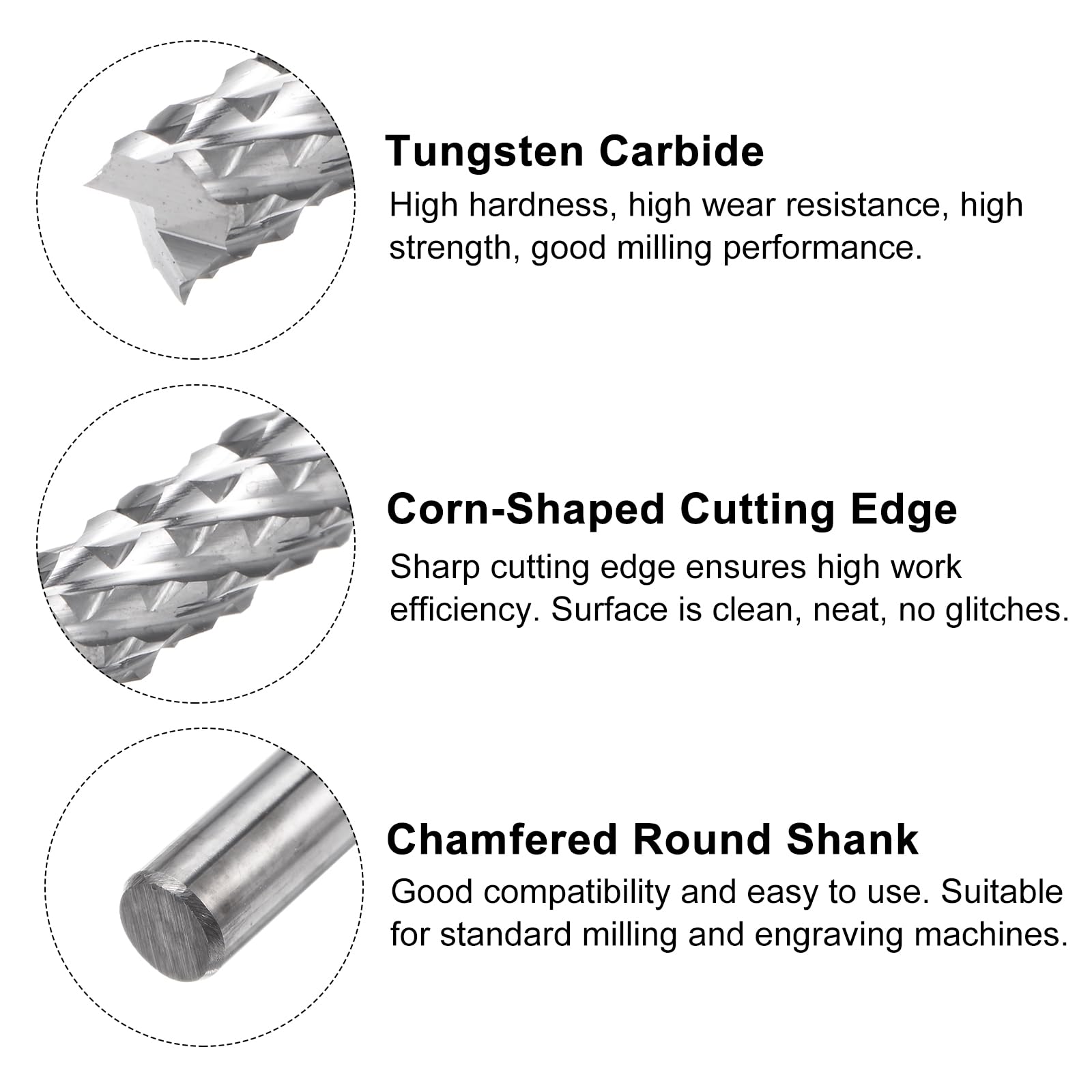 Technische Daten:• Gesamtlänge: 57,4 mm• Schaft: 6 mm (0,24\)• Schneidlänge: 11,9 mm• Schneiddurchmesser: 12,7 mm