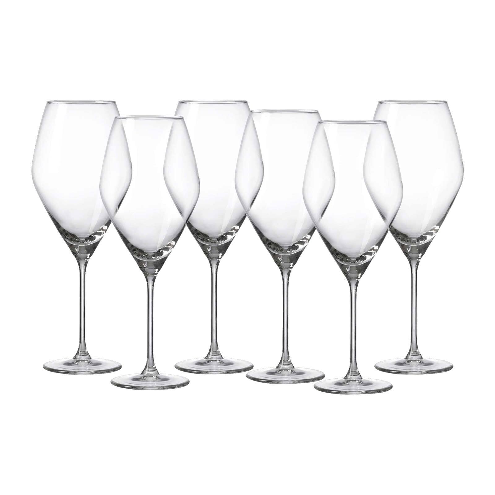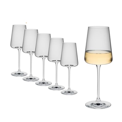 Weingenuss auf höchstem Niveau! Dieses 6er-Set Weißweingläser von Rona überzeugt mit modernem Design und bester Qualität. Aus bleifreiem Kristallglas mit 435ml Fassungsvermögen - perfekt für die Aromaentfaltung deiner Lieblingsweine. Die markante Form mit tief angesetzter Taille und lang gezogenem Kamin macht nicht nur was her, sondern verbessert auch den Weingenuss. Spülmaschinenfest und bruchresistent - ideal für den täglichen Gebrauch. Mit 22,5cm Höhe und 7,8cm Durchmesser liegen die Gläser perfekt in der Hand. Für alle, die ihren Wein richtig genießen wollen!