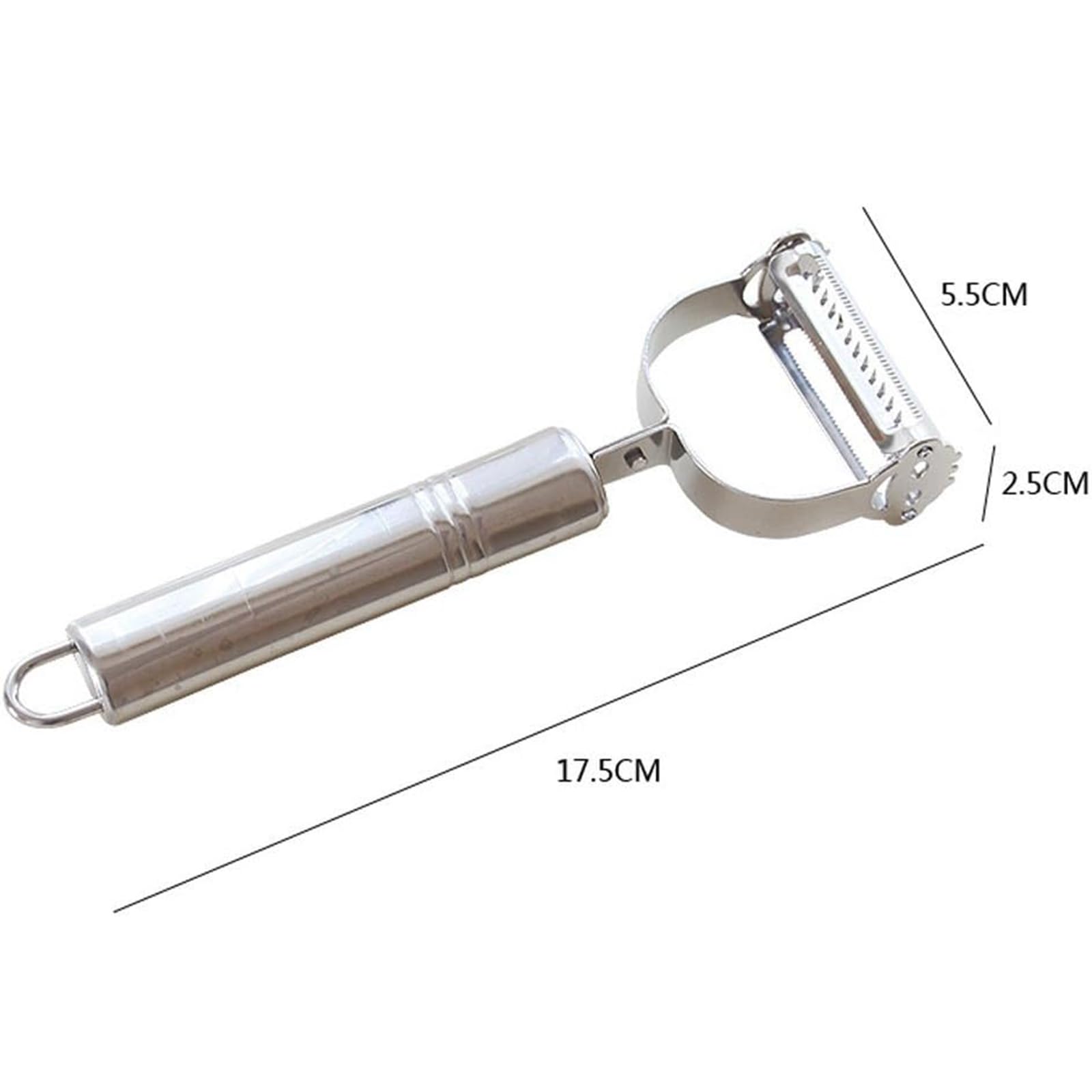 Der Alleskönner für deine Küche! Diese Weusenstyle Gemüseschäler aus Edelstahl sind super scharf und vielseitig. Mit 2 verschiedenen Klingen - eine zum Schälen, eine für Julienne-Streifen. Perfekt für Kartoffeln, Karotten, Gurken, Äpfel und vieles mehr. Ergonomischer, rutschfester Griff liegt gut in der Hand. Für Links- und Rechtshänder geeignet. Maße: 18 x 5,5 cm, leicht und handlich. Im 2er-Pack, also immer eins griffbereit. Macht die Küchenarbeit so viel einfacher und schneller. Einfach praktisch und langlebig - genau was man in der Küche braucht!
