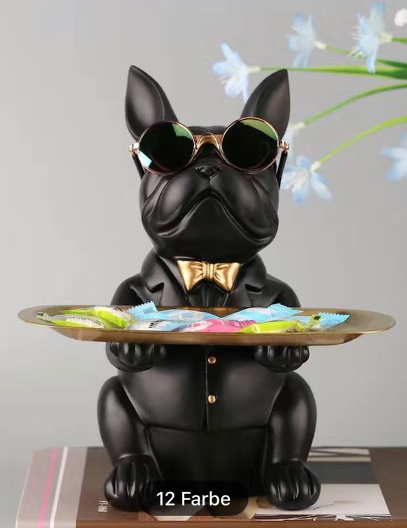 Diese niedliche Französische Bulldogge Statue ist nicht nur Deko, sondern auch super praktisch! Aus hochwertigem Kunstharz gefertigt, dient sie als stylische Süßigkeitenschale für Desserts, Obst oder Snacks und als Schlüsselhalter für deine Wohnung. Mit zwei separaten Aufbewahrungsräumen vorne und hinten bietet sie Platz für allerlei Kleinigkeiten. Das schwarze Design mit den typischen Bulldoggen-Merkmalen ist ein echter Hingucker in jedem Raum. Perfekt fürs Büro, Wohnzimmer oder als Geschenk für Hundeliebhaber. Auf der Rückseite befindet sich ein Loch, das Kinder als Sparschwein nutzen können - so lernen sie spielerisch das Sparen. Diese vielseitige Figur kombiniert Charme mit Funktionalität und ist ein Muss für alle Bulldoggen-Fans. Verwandele deine Ablagefläche in eine organisierte und dekorative Ecke mit diesem einzigartigen Accessoire!