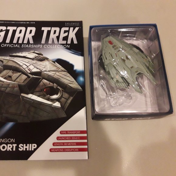 Star Trek Fans aufgepasst! Dieses detailgetreue Modell des Klingon Transport Schiffes ist ein absolutes Muss für jede Sammlung. Im Maßstab 1:704 und aus Metallguss gefertigt - typische Eaglemoss Qualität.