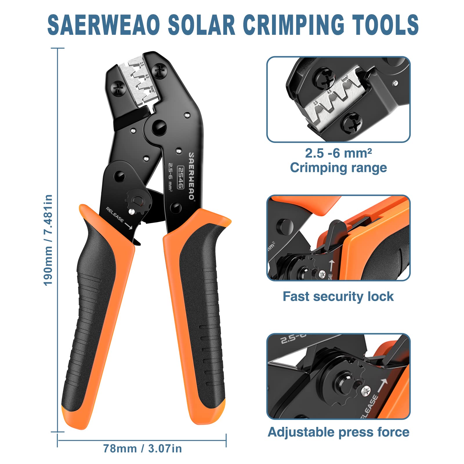 Alles für deine Solaranlage! Dieses komplette Crimpzangen-Set ist perfekt für PV-Kabel von 2,5-10mm². Enthält: Crimpzange aus Kohlenstoffstahl, 6 Paar 60A/1500V Stecker (für 10mm² Kabel), Schraubenschlüssel. Mit rutschfestem Gummi-Griff und Ratschenmechanismus für sicheres Arbeiten. Stecker aus PPO-Material - isoliert, flammhemmend, wasserdicht. Einfache Bedienung: crimpen, verbinden, fertig. Ideal für Solaranlagen auf Wohnmobilen, Booten, Campern oder Off-Grid-Systemen. Professionelles Werkzeug für Heimwerker und Profis. Macht deine Solarinstallation zum Kinderspiel!