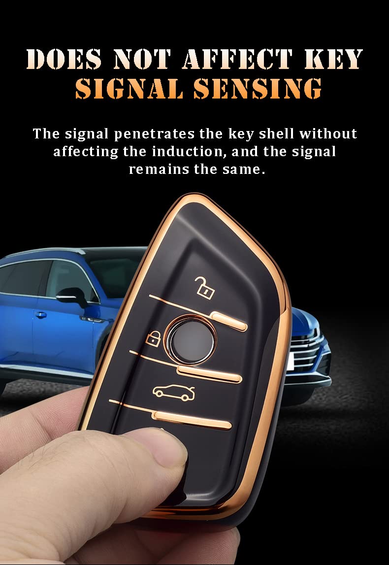 Pass auf deinen BMW-Schlüssel auf! Die ontto Hülle aus Wildleder schützt ihn vor Kratzern und sieht dabei noch mega stylisch aus. Kompatibel mit vielen Modellen wie X1, X3, X5, 3er, 5er und mehr – aber Achtung: Schau vorher unbedingt auf Bild 2, ob dein Schlüssel passt, denn je nach Baujahr kann der sich unterscheiden. Die Hülle ist genau nachm Original designed, also sitzt sie perfekt und die Tasten funktionieren wie gewohnt. Lieferung in ner kleinen Eisenbox (mit ONTTO-Logo) inklusive nem schicken Schlüsselanhänger. Wichtig: Wildleder nicht mit Lederöl pflegen! So bleibt dein Schlüssel sicher und sieht trotzdem cool aus. Einfach einlegen und losfahren!