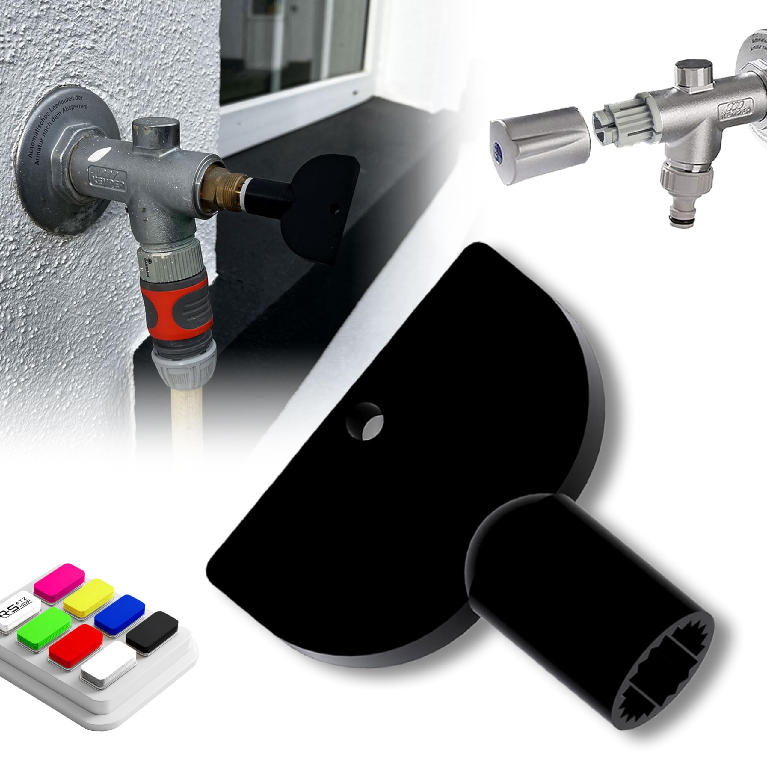 Praktische Ersatz-Steckschlüssel für deinen Kemper Frosti Außenwasserhahn! Dieses 2-teilige Set von ULEIVA (Made in Germany) passt perfekt zu den Modellen 578 und 579 ab Baujahr 2024. Auch kompatibel mit den Figuren 574 und 577 - hier einfach die Rastbuchse vom Ventil abziehen. Aus robustem Kunststoff in Blau, mit 8mm Innendurchmesser passend für alle gängigen Ventil-Spindeln von 3/8 und 1/2 Zoll Armaturen. Super als Ersatz wenn der Original-Schlüssel verloren ging oder kaputt ist. Einfach auf die Spindel stecken und drehen - schon lässt sich dein Außenwasserhahn wieder problemlos bedienen!