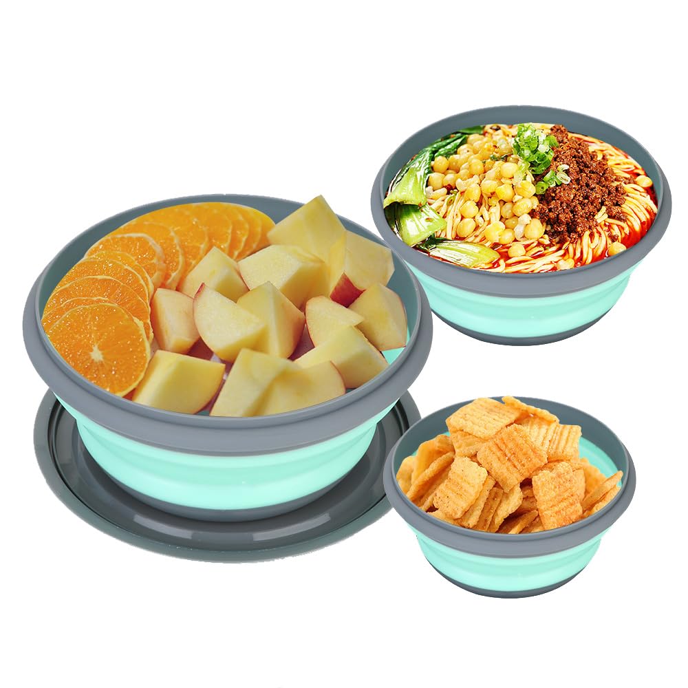 Perfekt für unterwegs! Dieses 3-teilige Set aus faltbaren Silikon-Schüsseln ist dein bester Begleiter für Camping, Wandern oder Picknicks. Die Schüsseln gibt's in drei Größen: Klein (6x12 cm), Mittel (7,7x15 cm) und Groß (8,5x19 cm). Zusammengefaltet sind sie super flach und platzsparend - ideal für den Rucksack! Mit Deckel bleiben deine Speisen frisch. Aus lebensmittelechtem Silikon, spülmaschinenfest und leicht zu reinigen. Ob Müsli, Snacks oder Salat - hier ist alles sicher verstaut. Nie wieder schwere Schüsseln schleppen! Einfach auspacken, aufklappen und loslegen. Dein praktischer Helfer für jede Outdoor-Aktivität!
