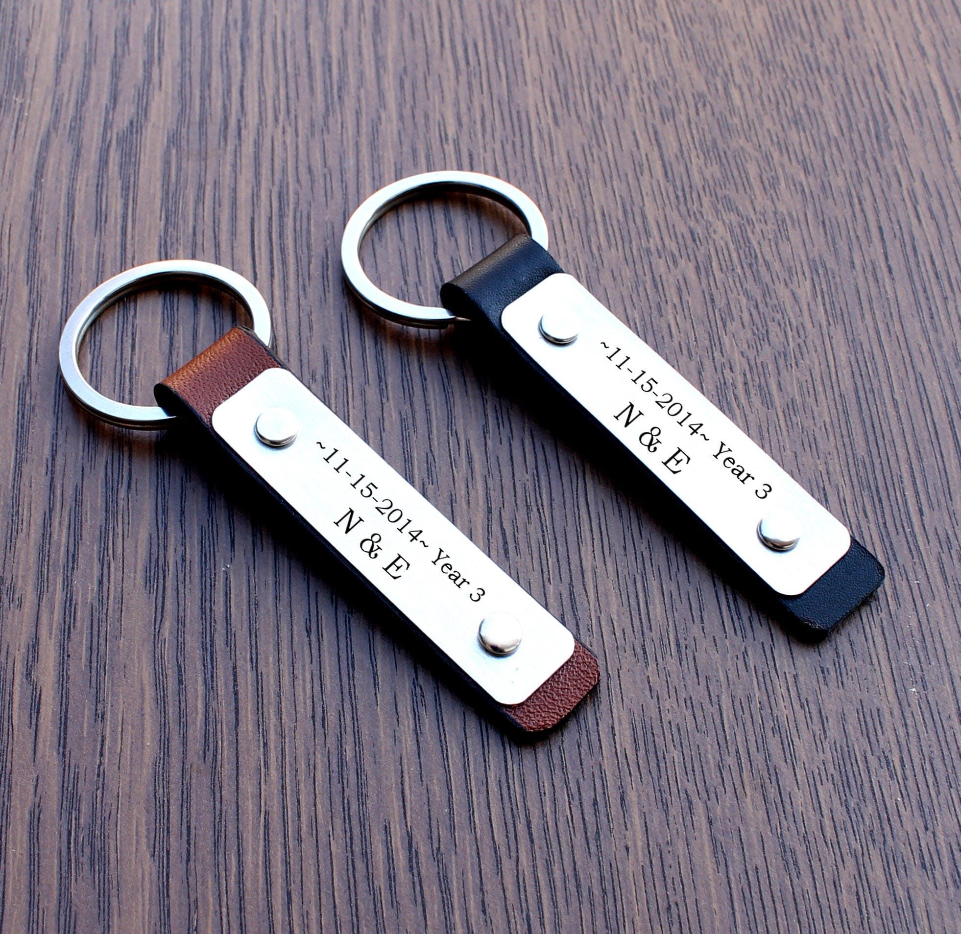 Ein ganz persönliches Accessoire für jeden Tag! Dieser Schlüsselanhänger aus vollem Rindsleder wird mit deinem Wunschtext graviert - Namen, Daten, Koordinaten oder Initialen. Mit 8,5x2,9cm kompakt aber auffällig. Doppelseitige Gravur möglich für noch mehr Individualität. Das hochwertige Leder entwickelt mit der Zeit eine schöne Patina und wird immer charaktervoller. Stabiler Metall-Karabiner hält sicher alle Schlüssel zusammen. Ideal als Geschenk für Jubiläen, Geburtstage, Vatertag oder als Andenken an besondere Ereignisse. Einfache Pflege: Mit feuchtem Tuch abwischen und an der Luft trocknen lassen. Jedes Stück ist ein Unikat durch die natürlichen Lederunterschiede. Mach Alltagsgegenstände zu etwas Besonderem!