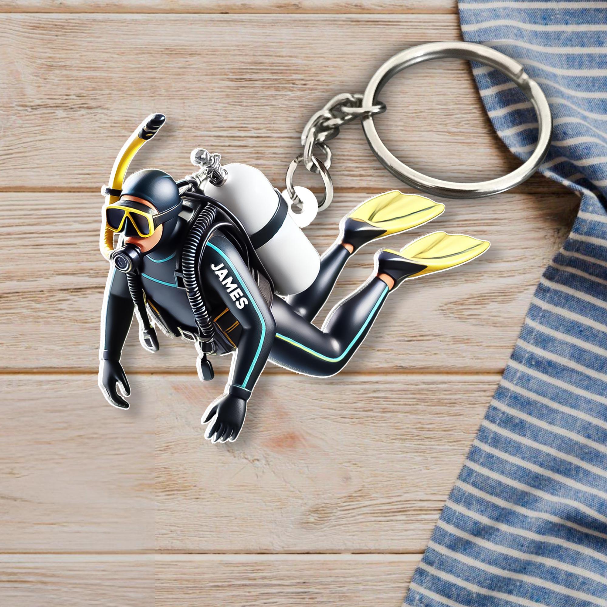 Zeig deine Leidenschaft für die Unterwasserwelt! Dieser coole Taucher-Schlüsselanhänger ist mehr als nur ein praktisches Accessoire - er ist eine Liebeserklärung an das Tauchen.