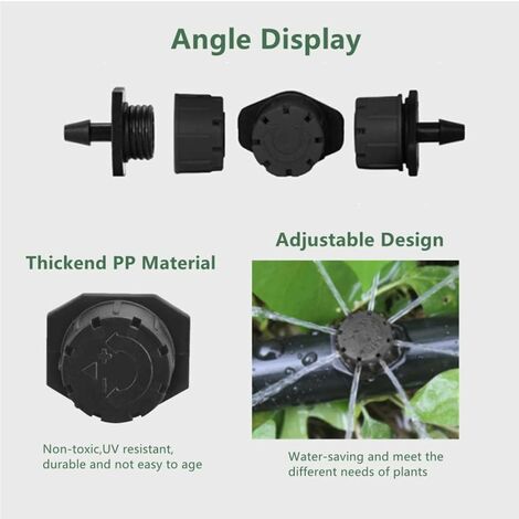 Perfekte Bewässerung für deine Pflanzen! Diese 100 Micro-Drip-Sprinkler mit je 8 Löchern sorgen für eine gleichmäßige 360°-Bewässerung. Einfach in die Erde stecken - die scharfe Spitze macht's leicht. Durch Drehen der Abdeckung regulierst du die Wassermenge. Passt perfekt für 4mm und 7mm Schläuche. Aus robustem PE-Kunststoff, wetterfest und langlebig. Ideal für Blumenbeete, Gemüsegarten, Gewächshaus oder Balkonpflanzen. Spart Wasser und Zeit - deine Pflanzen werden's dir danken!