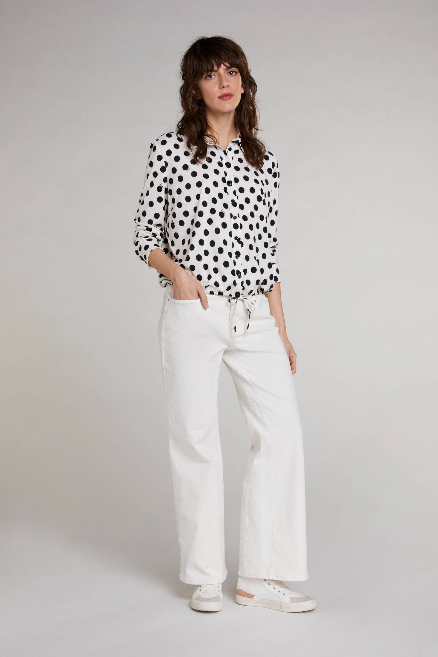 Stylish und super bequem! 👚 Diese Oui Damenbluse in lässigem Streifen-Design ist ein echter Allrounder. Aus elastischer Baumwollmischung gefertigt, fühlt sie sich angenehm weich auf der Haut an. Der kurze Stehkragen mit Schluppe zum Binden verleiht ihr einen femininen Touch. Die überschnittene Schulter und lange Manschette sorgen für perfekte Passform. Perfekt für: • Büro-Alltag • Freizeit • Dates • Shopping-Touren • Veranstaltungen Features: • Elastische Baumwollmischung • Lässiger Schnitt • Schluppe zum Binden • Überschnittene Schulter • Verdeckte Knopfleiste Fühl dich wohl und sieh dabei gut aus - mit dieser vielseitigen Bluse!