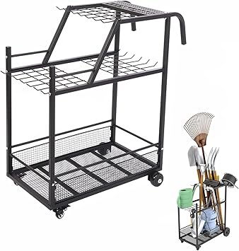 Endlich Ordnung im Gartenhaus! Dieser praktische 3-stöckige Organizer von WaifaYie bringt System in deine Gartengeräte. Mit den Maßen 105x42x100cm bietet er reichlich Platz für Schaufeln, Rechen, Besen und mehr. Die 4 Rollen (2 sperrbar) machen ihn super mobil - einfach über den Rasen oder durch die Garage schieben. Besonders praktisch: der Aufbewahrungskorb für Kleinteile und die 36 Schlitze für Langstielwerkzeuge plus 12 Haken für Kleingeräte. Aus robustem Stahl und wetterfest - hält auch draußen problemlos stand. Einfacher Aufbau ohne Werkzeug, inklusive Standfüßen für unebenen Boden. Perfekt für Garage, Schuppen oder Hof!