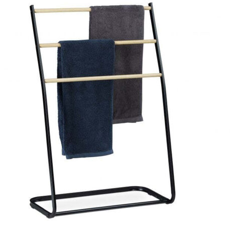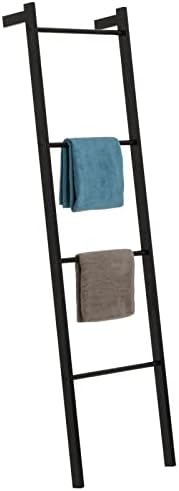 Dieser Handtuchhalter im Industrial-Look ist nicht nur super praktisch, sondern sieht auch noch mega aus! Mit 4 Etagen bietet er reichlich Platz für Handtücher, Decken, Kleidung - was auch immer du verstauen möchtest. Aus robustem Metall, schwarz lackiert und rostfrei. Maße: 170x43x10cm (HxBxT). Perfekt für kleine Badezimmer, da er platzsparend ist. Einfach aufstellen oder an die Wand lehnen - kein Bohren nötig! Die versetzten Sprossen sorgen für gute Luftzirkulation, Handtücher trocknen schneller. Rutschfeste Füße schützen deinen Boden. Leicht zu reinigen - einfach mit feuchtem Tuch abwischen. Sieht nicht nur im Bad gut aus, sondern auch im Schlafzimmer oder Wohnzimmer! Montage in wenigen Minuten erledigt.