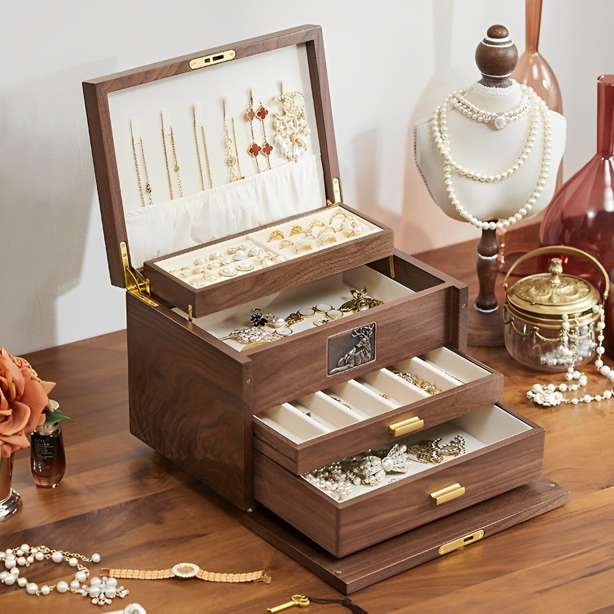 Verwandle deine Schmucksammlung in eine wertvolle Präsentation! Dieses Kästchen ist das perfekte Geschenk für alle, die Ordnung und Stil lieben. Einfach bestellen und deine Schätze sicher und schön verwahren!