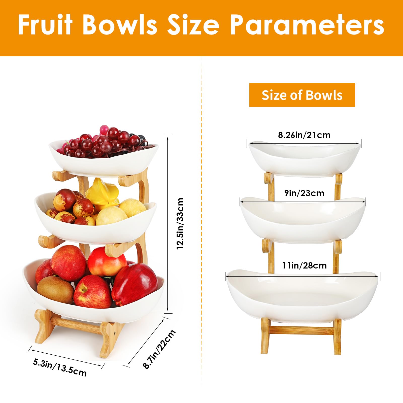 So schön und praktisch! Diese 3-stöckige Obstschale sieht nicht nur toll aus, sondern spart auch jede Menge Platz. Die weißen Keramik-Schalen (20 cm, 23 cm, 28 cm) sind auf einem stabilen Bambus-Gestell montiert. Bambus ist wasserabweisend und schimmelt nicht. Perfekt für Obst, Gemüse, Nüsse, Snacks oder Süßigkeiten. Sieht super modern aus und passt in jede Küche oder Esszimmer. Einfach zusammenzubauen - in wenigen Minuten fertig. Spülmaschinengeeignet (nur die Schalen). Kleine Unebenheiten in der Keramik sind normal und machen jedes Stück einzigartig. Ideal für den täglichen Gebrauch oder für Partys. Macht deine Küche gleich viel ordentlicher und hübscher!