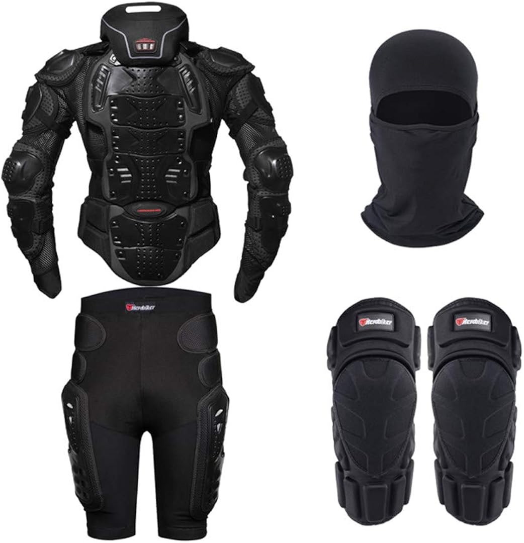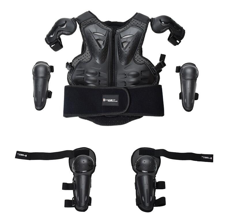 Perfekter Schutz für deine kleinen Rennfahrer! Dieses 5-teilige Motorrad-Schutzset gibt dir die Sicherheit, die dein Kind beim Fahren braucht. Enthalten sind Knieschoner, Ellbogenschoner und ein stabiler Brustpanzer - alles aus hochwertigem PE- und EVA-Material das richtig was aushält. Die Teile sind super elastisch und passen sich perfekt dem Körper an, ohne die Bewegungsfreiheit einzuschränken. Perfekt nicht nur fürs Motorradfahren, sondern auch für Skateboarden, Radfahren, Skifahren oder Klettern. Die verstellbaren Funktionen sorgen für optimalen Sitz und der Brustpanzer schützt zuverlässig bei Stürzen. In blau-schwarzem Design das den Kids richtig gut steht. Für Kinder von 4-14 Jahren in verschiedenen Größen erhältlich. Mit den stark klebenden Aufklebern halten die Schoner sicher an Ort und Stelle. Mach dein Kind sicher und selbstbewusst beim Sport - mit dieser professionellen Ausrüstung!