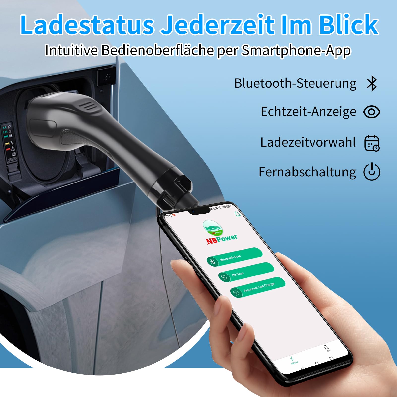 • WODHMIEY Type 2 EV Ladegerät 11KW - 5m Kabel Mit CEE Stecker - App Steuerung - IP54