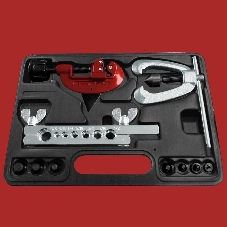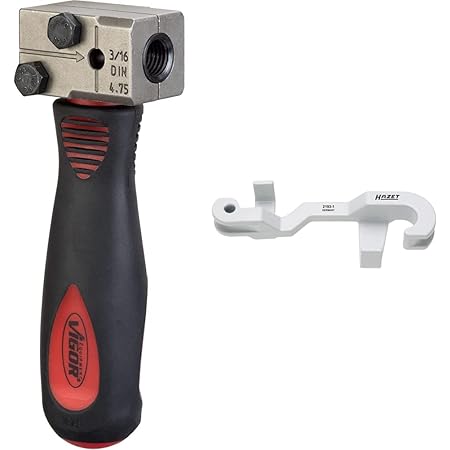 Professionelle Bördelungen ganz einfach selbst gemacht! Dieses Bördelgerät von Bubuny ist das perfekte Werkzeug für Bremsleitungs-Arbeiten. Speziell für 4,75 mm (3/16 Zoll) Rohre aus Stahl, Aluminium und Kupfer. Erzeugt saubere 45°-Bördelungen nach DIN-Norm. Das kompakte Design ermöglicht Arbeiten auch in engen Bereichen am Fahrzeug. Im Set enthalten: Bördelgerät, Handgriff, Grundkörper, Bördeldorn, Bolzen und Spezialfett. Aus robustem Kohlenstoffstahl für lange Haltbarkeit. Einfache Handhabung - der Positionierbolzen fixiert die Leitung sicher. Ideal für KFZ-Werkstätten und versierte Heimwerker. Für perfekte Ergebnisse bei Bremsleitungs-Reparaturen!