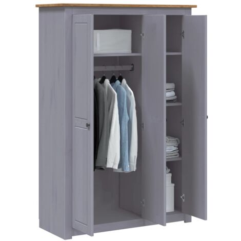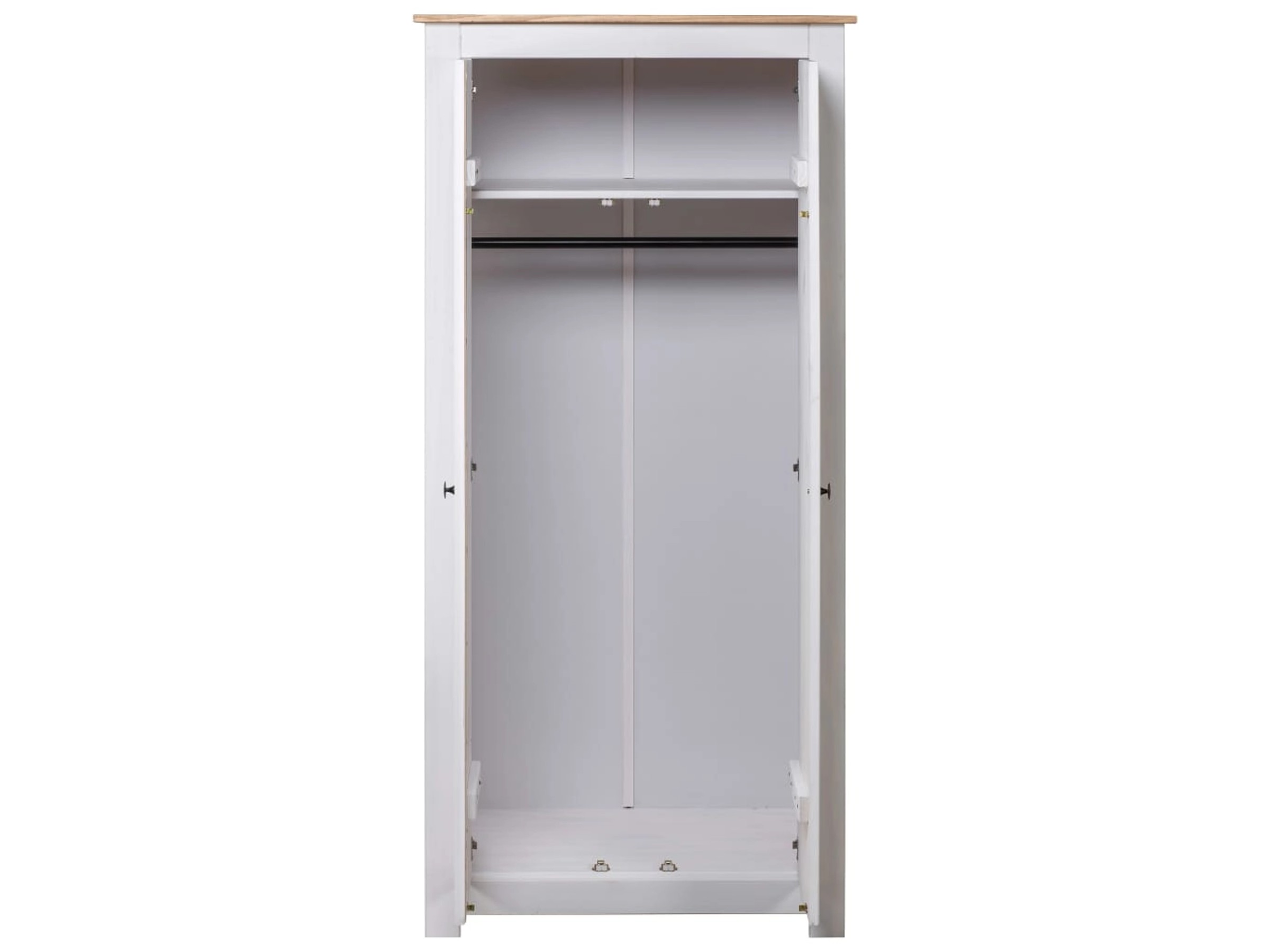 Moin! Dieser HUAKEHOM Kleiderschrank aus Kiefer-Massivholz ist die perfekte Aufbewahrungslösung für dein Schlafzimmer! Mit 118cm Breite, 50cm Tiefe und 171,5cm Höhe passt er auch in kleinere Räume! 3 Türen, 4 stabile Ablagen und ein großes Fach mit Kleiderstange bieten Platz für alles - Jacken, Kleider, Pullover, Jeans, Schuhe, Handtaschen! In weiß und Naturholz-Optik sieht er modern und zeitlos aus! Aus massivem Kiefernholz gefertigt, ist er robust und hält ewig! Wichtig: Mit der mitgelieferten Halterung an der Wand sichern, damit nichts umkippen kann! Perfekt für alle, die Ordnung in ihrer Kleidung lieben! Einfach aufbauen und sich über mehr Stauraum freuen!