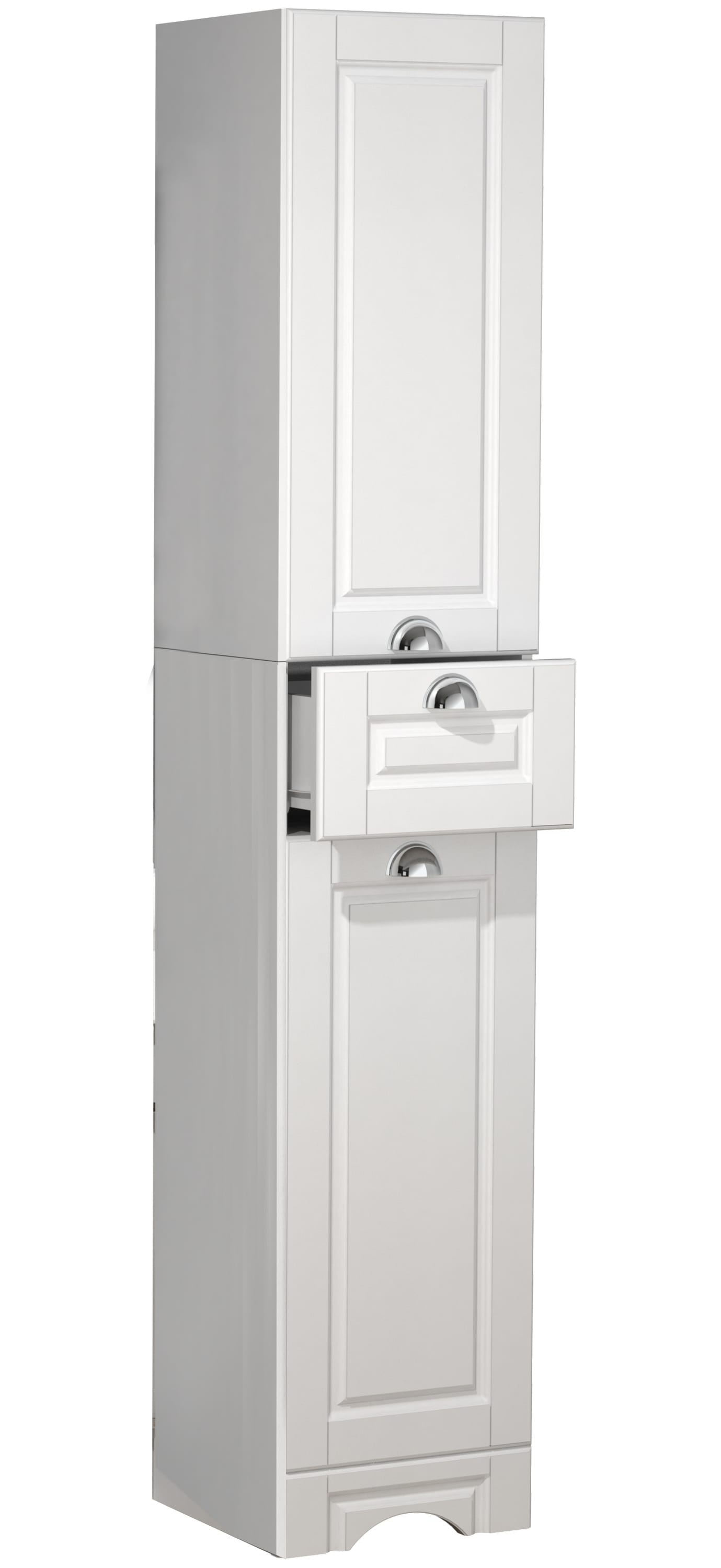 Genialer Stauraum für jede Ecke! Dieser weiße Eckschrank (45x45x173cm) nutzt bisher ungenutzten Platz optimal. Mit drei offenen Regalen und einer Schranktür mit verstellbarem Innenboden. Aus stabiler MDF-Platte, trägt bis zu 30kg. Perfekt für Handtücher, Shampoos, Putzmittel - was auch immer Ordnung braucht. Einfach aufzubauen, passt in Bad, Küche oder Wohnzimmer. Mach dein Zuhause ordentlicher und stylischer!
