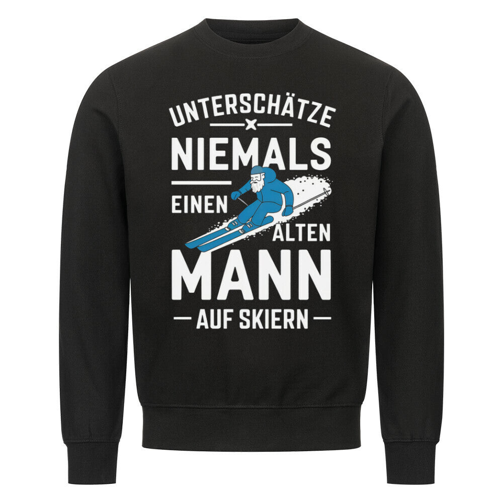 Na, bist du auch so ein Ski-Veteran, der die Piste immer noch rockt? 🎿 Dann ist dieser lustige Hoodie genau dein Ding! Mit dem Spruch \Unterschätze niemals einen alten Mann mit Skiern\ zeigst du allen, dass Alter nur eine Zahl ist.