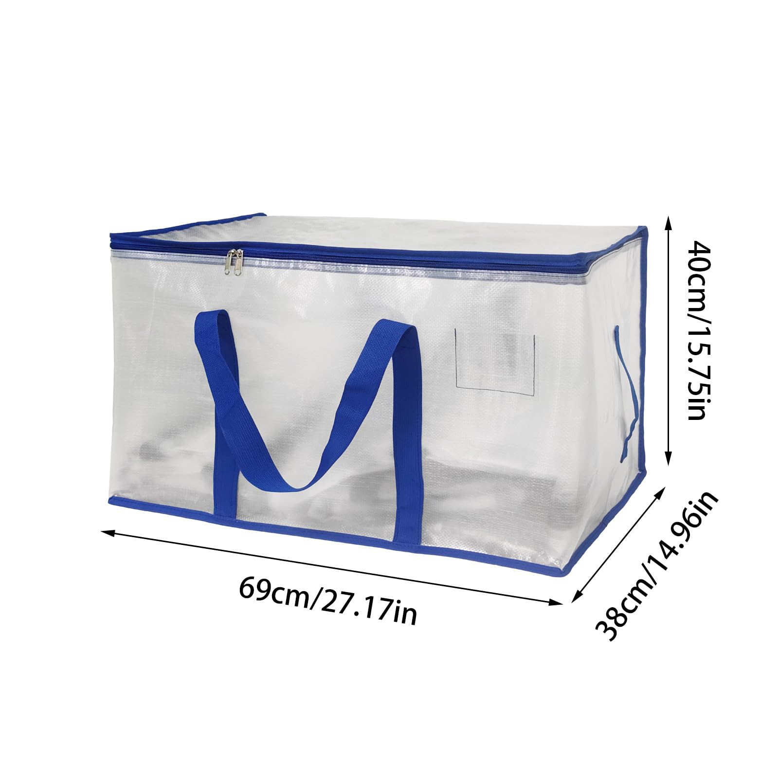 Perfekt für Umzug und Aufbewahrung! Dieses 3er-Set transparenter Aufbewahrungstaschen macht dein Leben leichter. Mit 40L Fassungsvermögen und wasserdichtem PVC-Material schützen sie deine Kleidung vor Feuchtigkeit und Staub. Der transparente Boden zeigt dir sofort, was drin ist. Der praktische Zwei-Wege-Reißverschluss öffnet sich auch bei voller Beladung leicht. Nach Gebrauch einfach zusammenfalten und platzsparend verstauen. Ideal für saisonale Kleidung, Bettwäsche, Camping-Ausrüstung oder den nächsten Umzug. Organisiere deinen Stauraum effizient und behalte immer den Überblick!