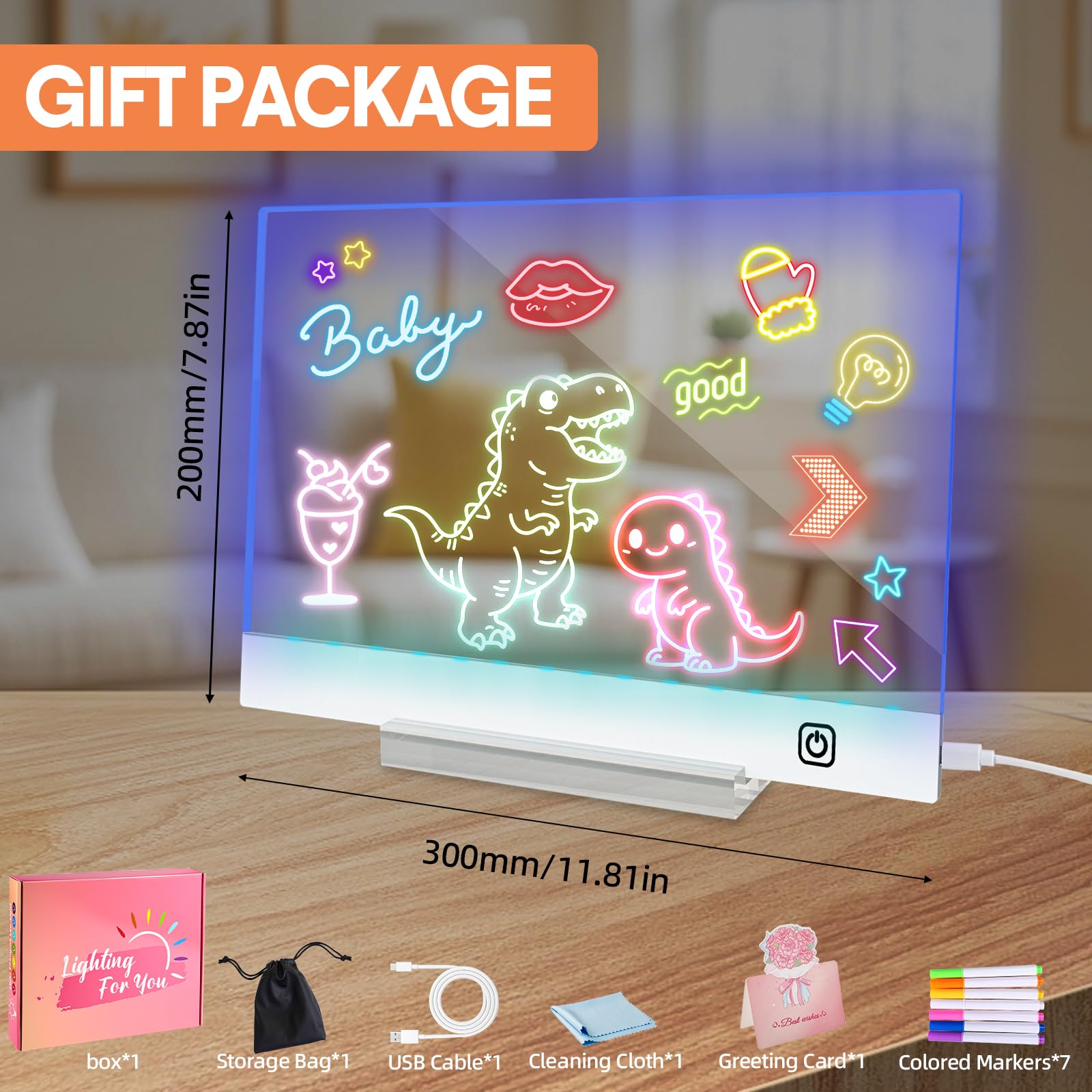 Wow, dieses LED Zeichenbrett bringt richtig Licht ins Spiel! Mit 30x20cm großer Glasfläche und 8 bunten Stiften - perfekt für kreative Köpfe! 4 Lichtmodi per Fernbedienung steuerbar: Monochrom, Atemlicht, Farbverlauf und automatischer Farbwechsel - für jede Stimmung die passende Beleuchtung! Einfach mit feuchtem Tuch abwischbar und sofort wieder einsatzbereit - keine Geisterbilder! Perfekt für To-Do-Listen, Einkaufszettel, Familienpläne oder kreative Kunstwerke. Im Set enthalten: Zeichenbrett, 8 Stifte, Reinigungstuch, USB-Kabel, Geschenkbox und Grußkarte - also alles, was du brauchst! Über USB betrieben - einfach an Laptop, Powerbank oder Steckdose anschließen. Ob fürs Home-Office, Kinderzimmer oder als Deko-Element - dieses Board ist super vielseitig! Mach deine Notizen und Zeichnungen zum echten Hingucker! Ideal als Geschenk für Kreative und Organisierte!