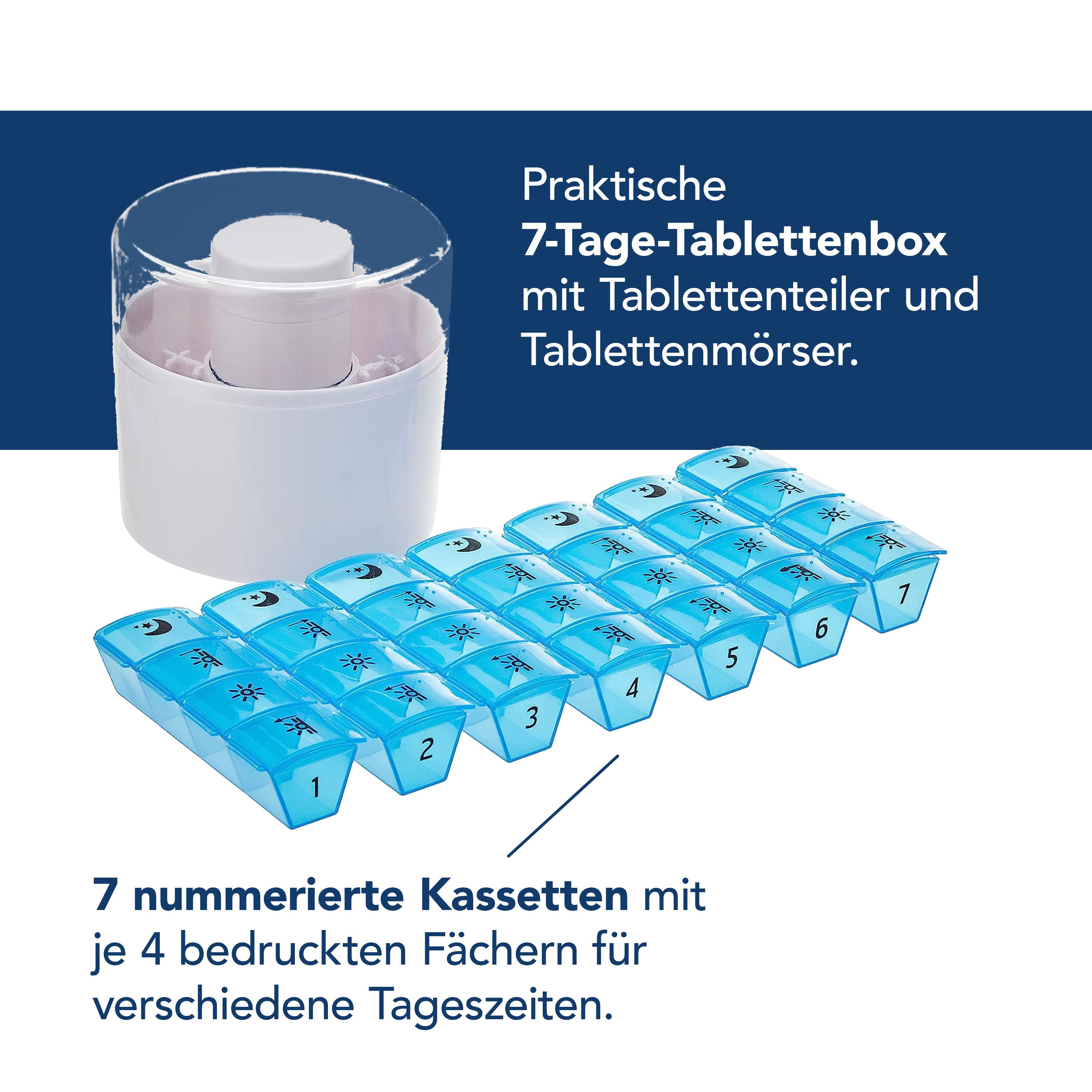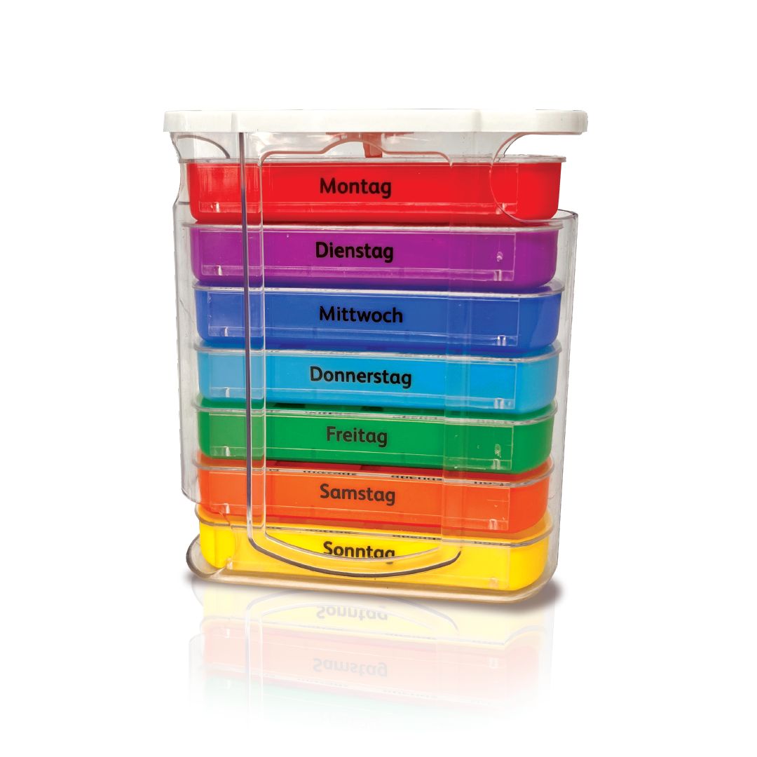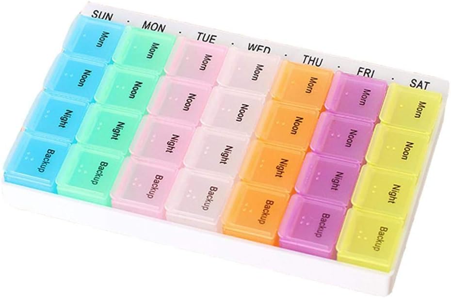 Nie wieder Medikamente vergessen mit diesem praktischen 7-Tage-Organizer! Mit 28 abnehmbaren Fächern (4 pro Tag) behältst du perfekt den Überblick über deine tägliche Medikamenteneinnahme. Jeder Wochentag hat eine andere Farbe - da verwechselst du nichts! Die kompakte Größe von 10,5 x 7,8 x 4,6 cm macht die Box super transportabel, perfekt für unterwegs oder Reisen. Sie kommt in einer transparenten Aufbewahrungsbox, damit nichts verloren geht. Die Deckel schließen schön fest, sind aber trotzdem leicht zu öffnen - auch für Menschen mit eingeschränkter Handmotorik ideal. Aus langlebigem Kunststoff gefertigt, ist die Box komplett waschbar und hält deine Pillen trocken. Und das Beste: Du kannst sie nicht nur für Medikamente, sondern auch für Vitamine, kleinen Schmuck oder elektronisches Zubehör verwenden. So behältst du immer Ordnung in deinen kleinen Dingen!